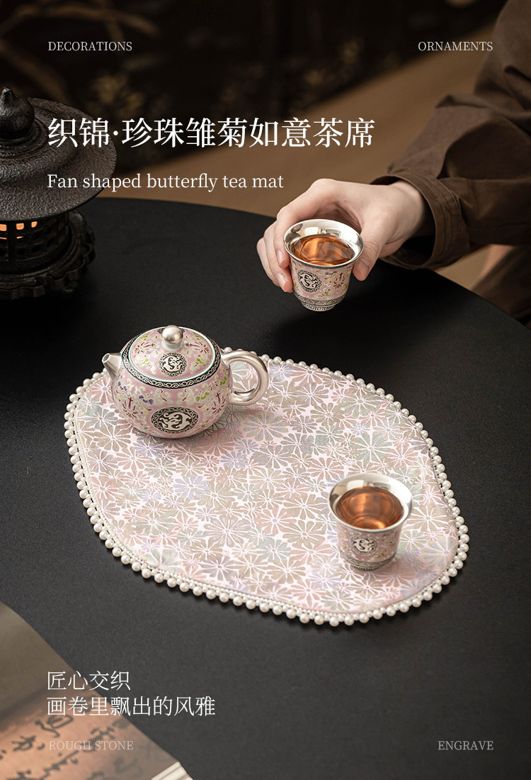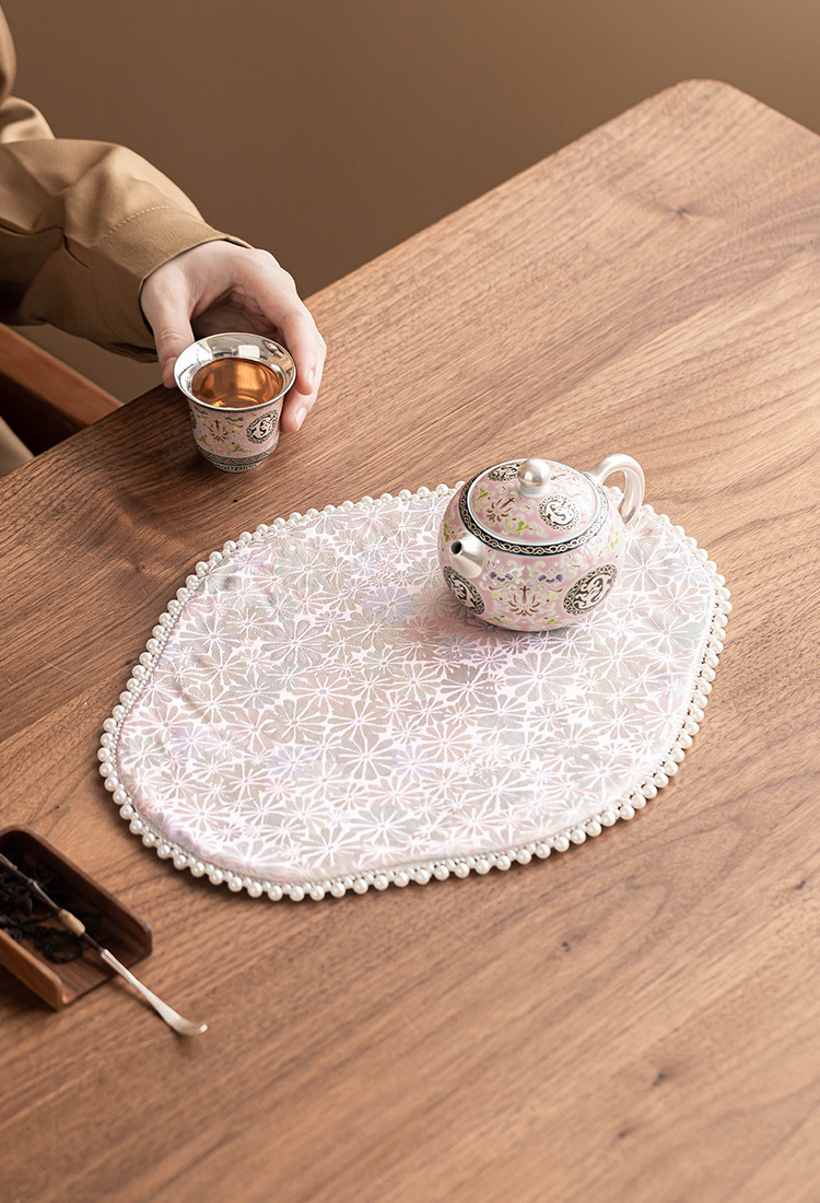- Thảm trà hoa cúc dệt gấm, khăn trà ngọc trai, thảm trải bàn nghệ thuật vải thiền kiểu Trung Quốc mới, thảm trà hai mặt, phụ kiện trà đạo