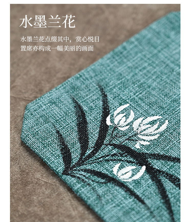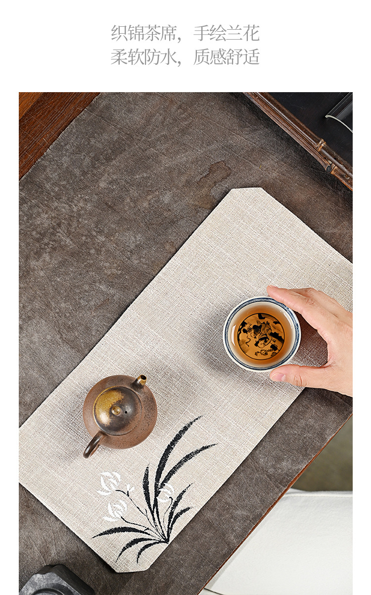 - Thảm trà không thấm nước, vải dệt thiền, trà đạo kiểu Nhật, thảm trà hoa lan vẽ tay, thảm cách nhiệt pha trà