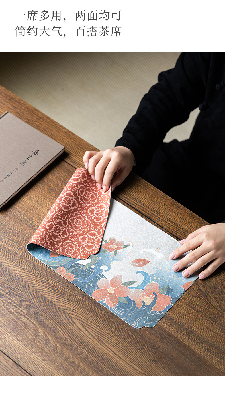 - Thảm trải xốp khô kiểu Trung Quốc mới vải, khăn trà hai mặt, đệm bàn trà gia dụng, phụ kiện trà đạo đa năng một ghế