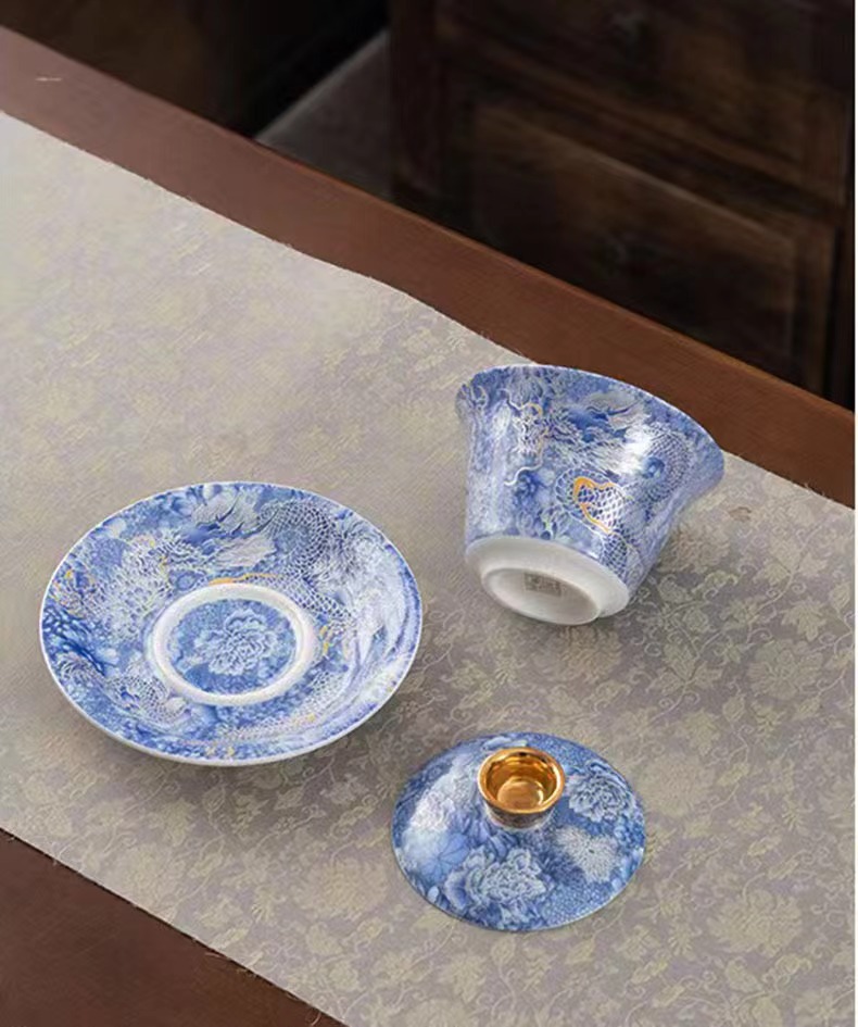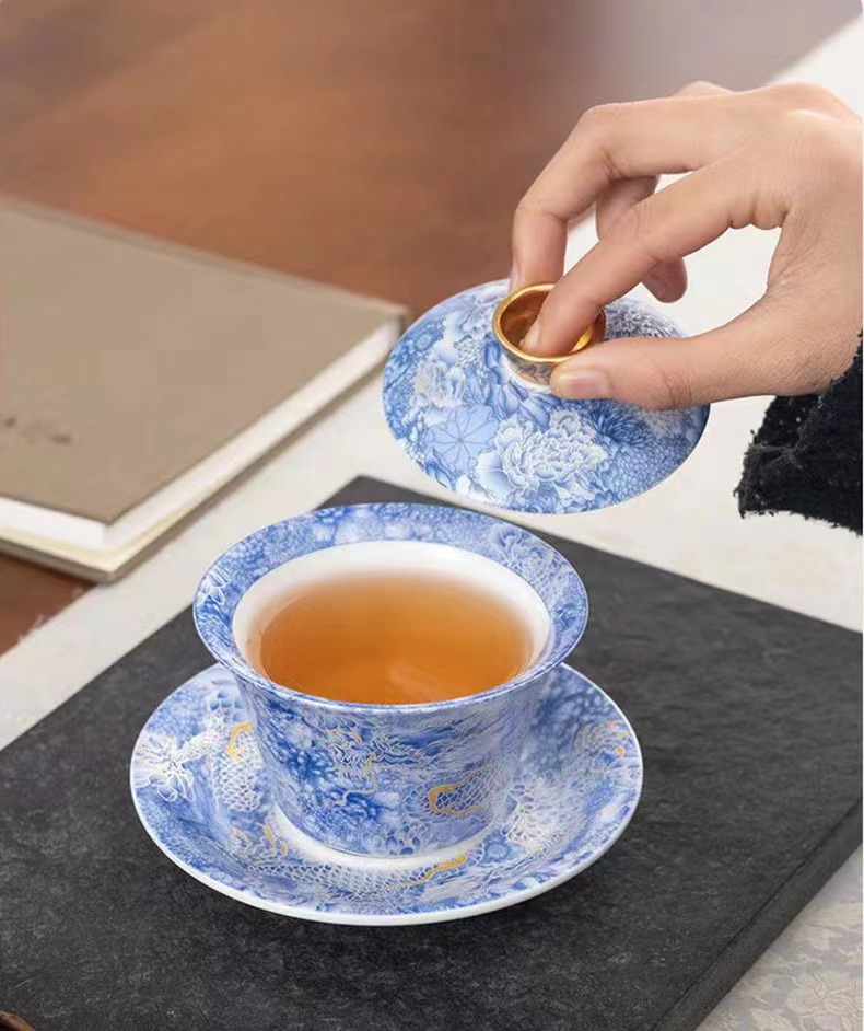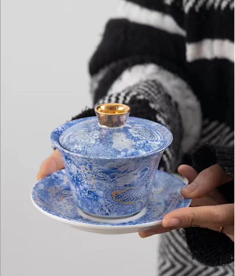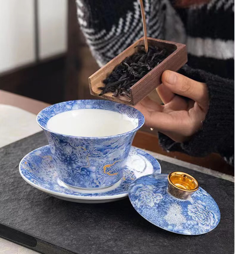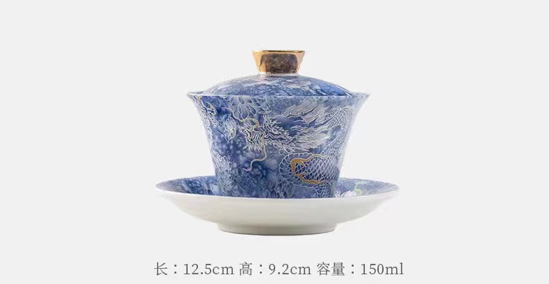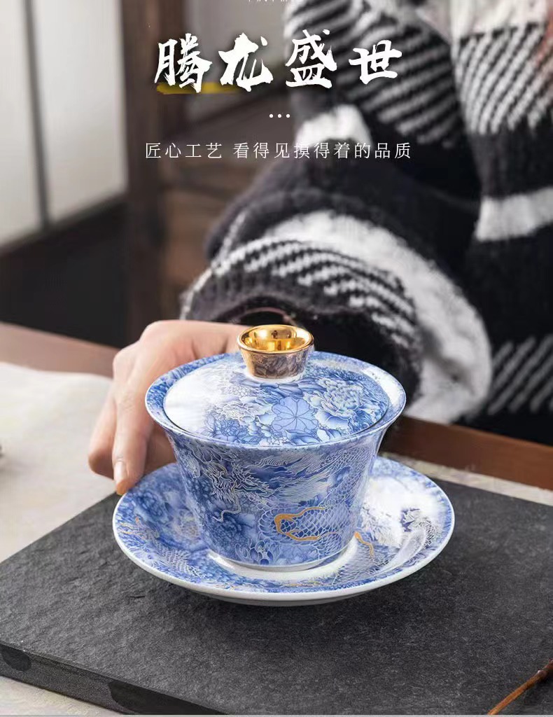 - Thangka di chuột có nắp bát đựng trà tam tài cỡ lớn ngọc bích bát trà vàng bộ trà Kung Fu bát pha trà cầm tay gia dụng cao cấp