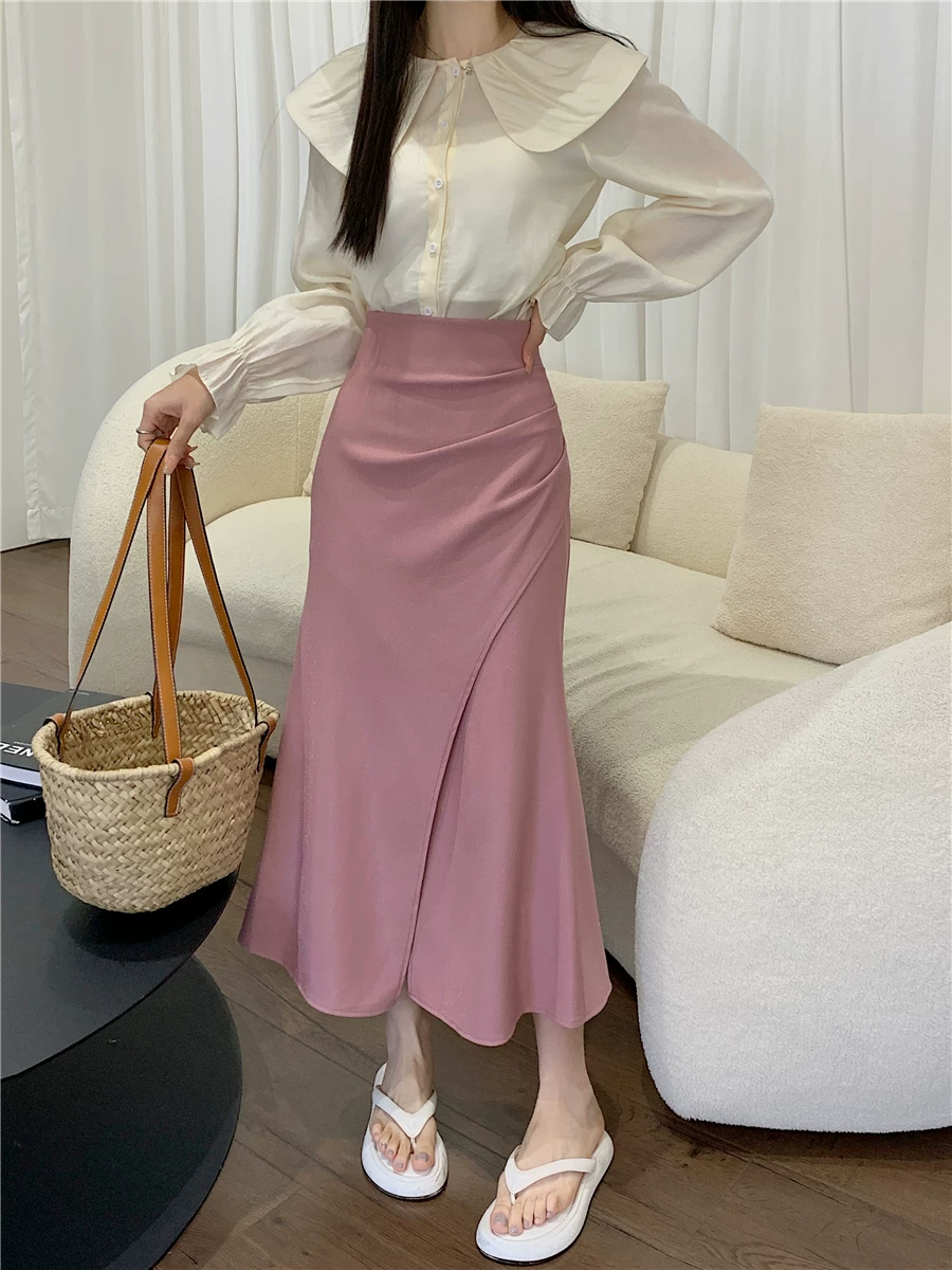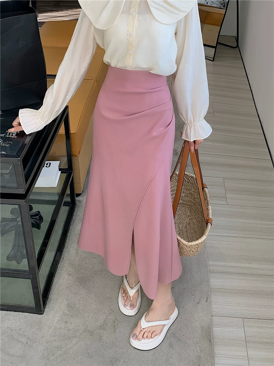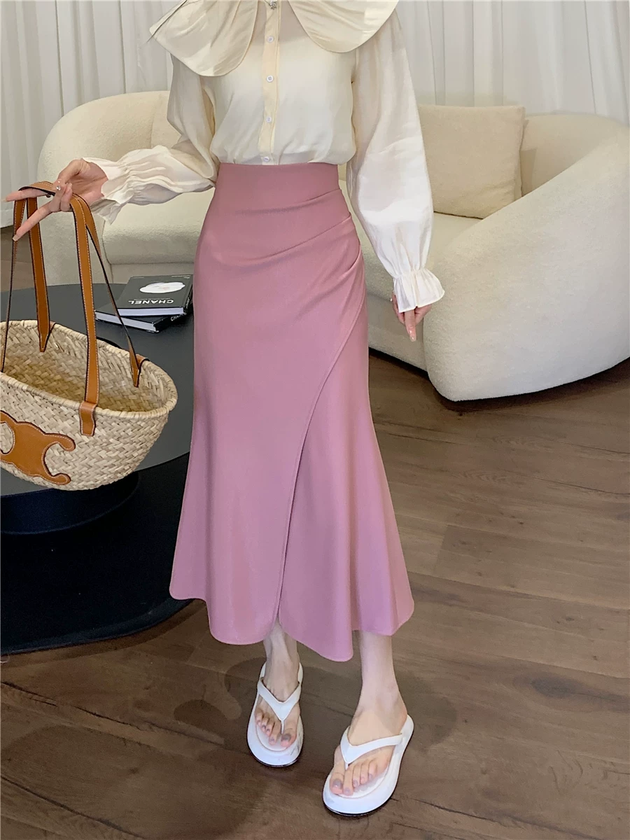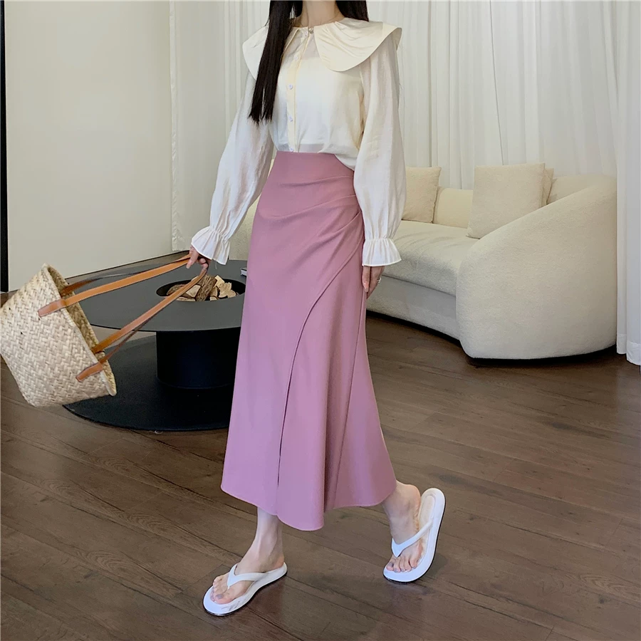 - Thích hợp cho người có thân hình hình quả lê, váy đuôi cá màu hồng cỡ lớn mùa hè, váy dài chữ A tôn dáng cho phụ nữ cỡ lớn che hông.