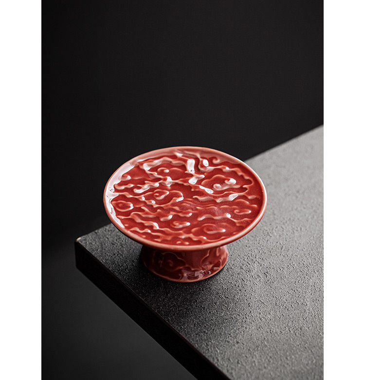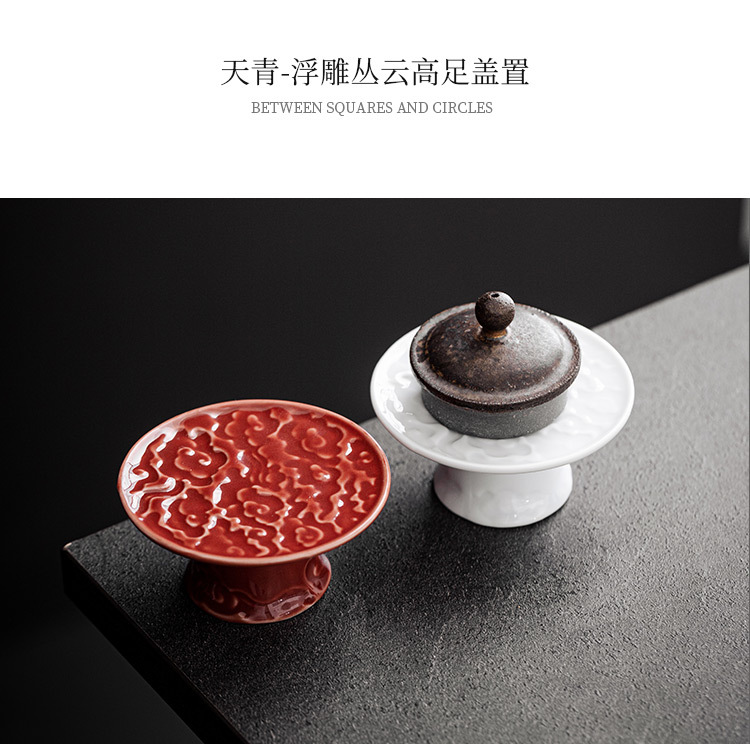 - Thiên Thanh phù điêu Công Vân chân cao Nắp ấm trà giá đỡ dụng cụ trà Kung Fu gốm sứ gia dụng giá đỡ nắp cốc