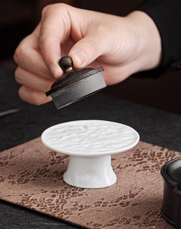Thiên Thanh phù điêu Công Vân chân cao Nắp ấm trà giá đỡ dụng cụ trà Kung Fu gốm sứ gia dụng giá đỡ nắp cốc