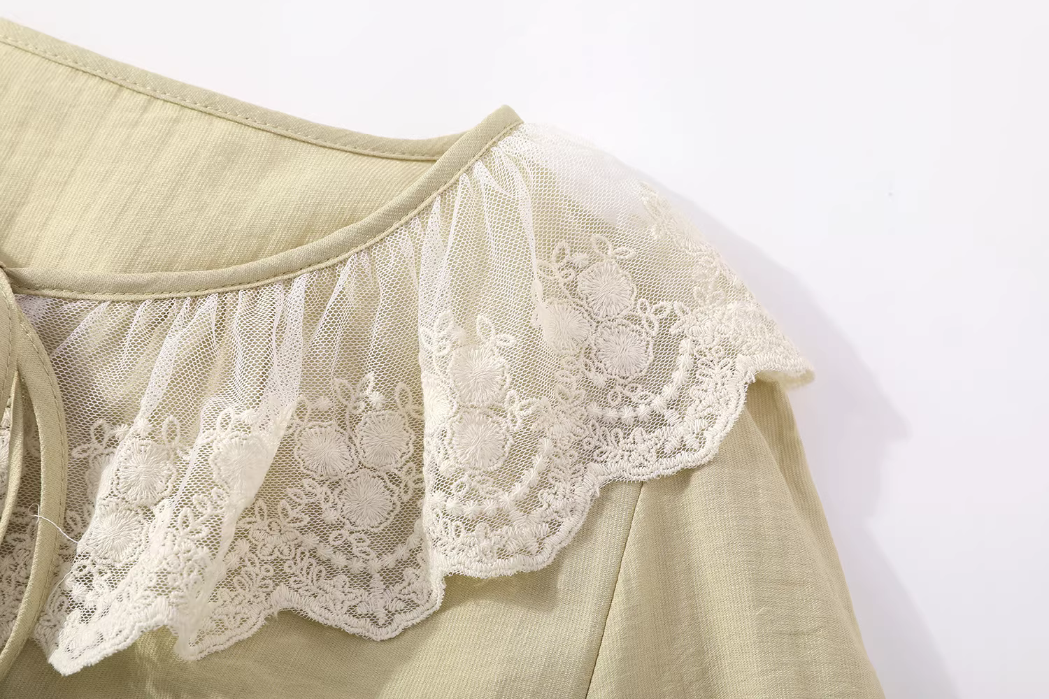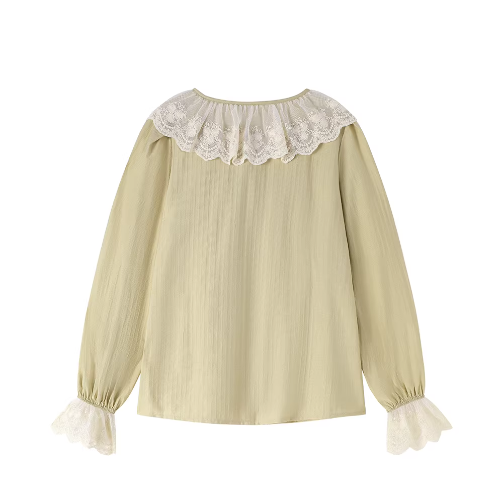 - Thiết kế kiểu Pháp, phong cách độc đáo, nhẹ nhàng, độc đáo, áo dài tay ngọt ngào dành cho nữ, áo sơ mi cổ búp bê cổ điển đầu thu
