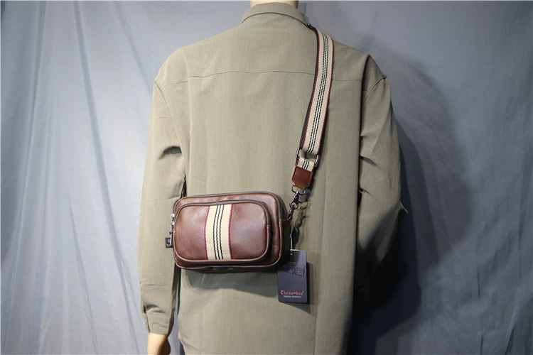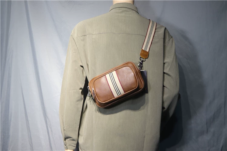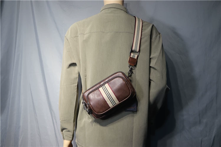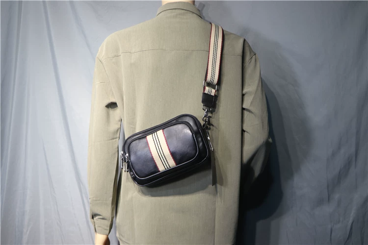 - threebox phiên bản Hàn Quốc mới hợp thời trang thương hiệu túi đeo vai nam sọc giản dị hip-hop dệt đeo chéo thể thao túi nhỏ