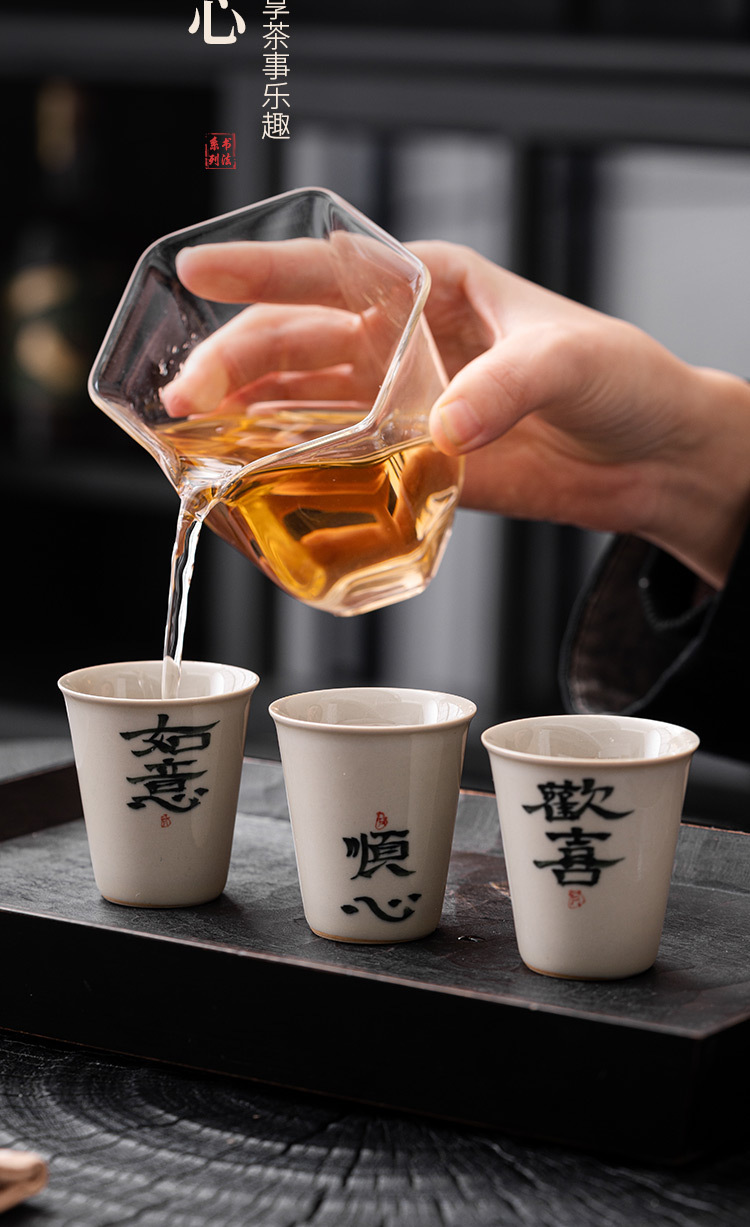 Thư pháp thủ công cốc Juxiang Bộ trà gốm sứ cổ điển Trung Quốc Cốc pha trà cốc nhỏ Kung Fu cốc trà cốc uống trà