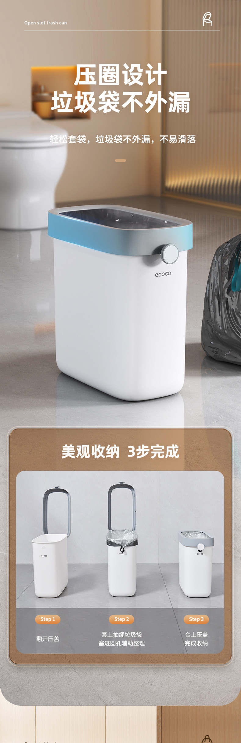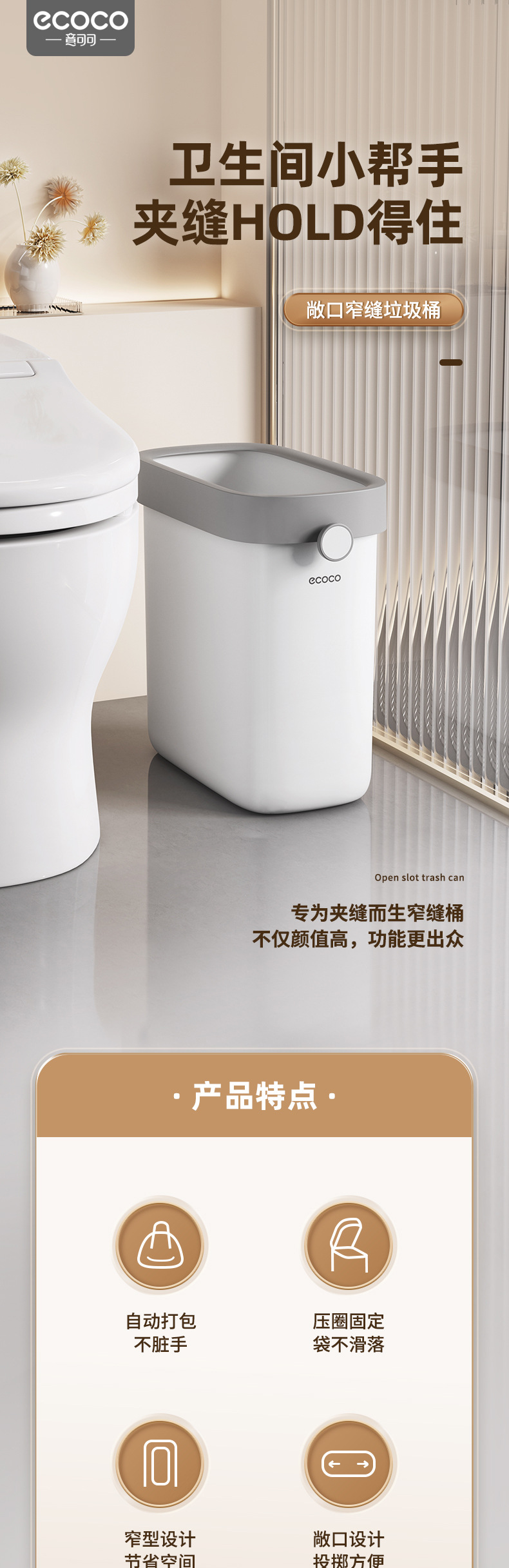 - Thùng rác gia dụng nhà vệ sinh nhà vệ sinh mới 2024 khe hở lớn dung tích lớn thùng chuyên dụng thùng vệ sinh nhỏ hẹp