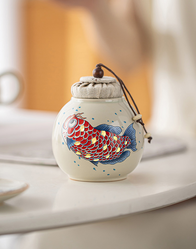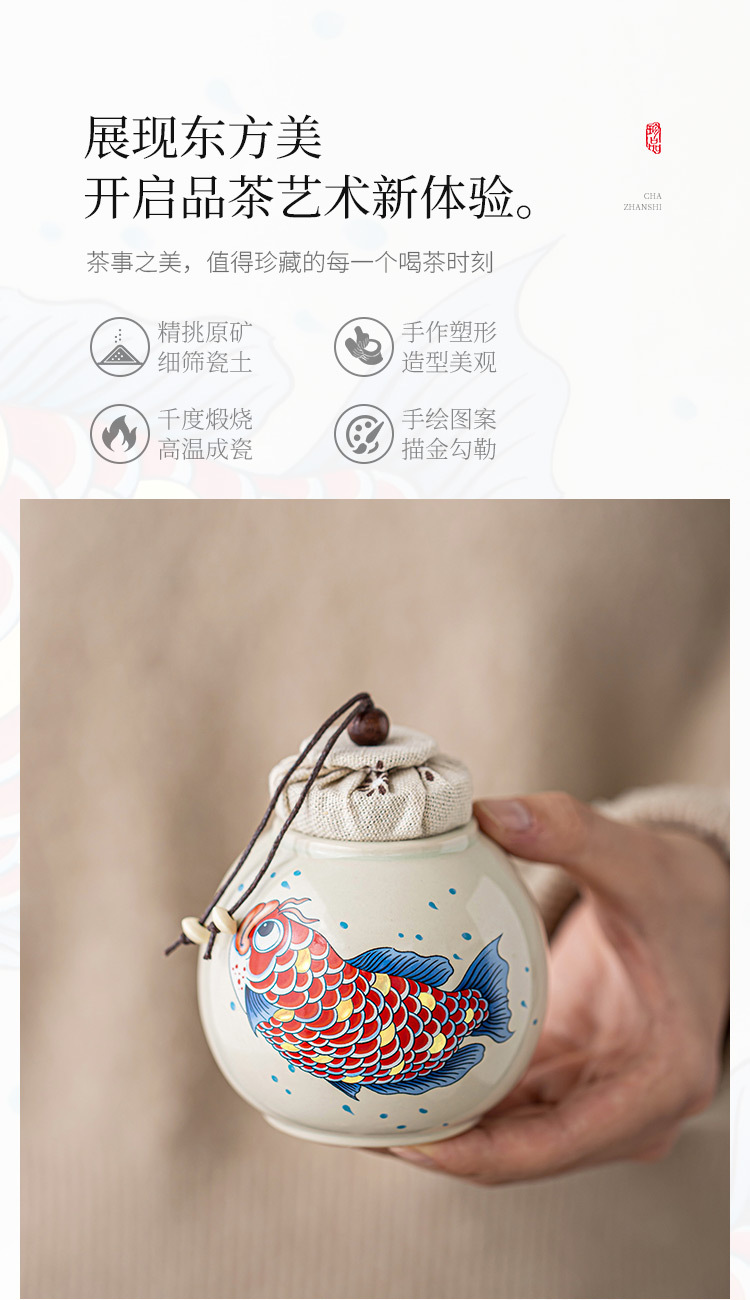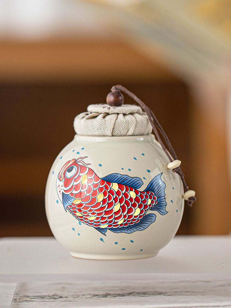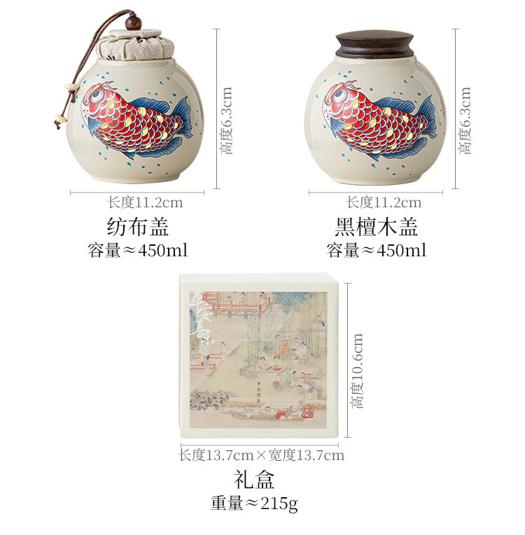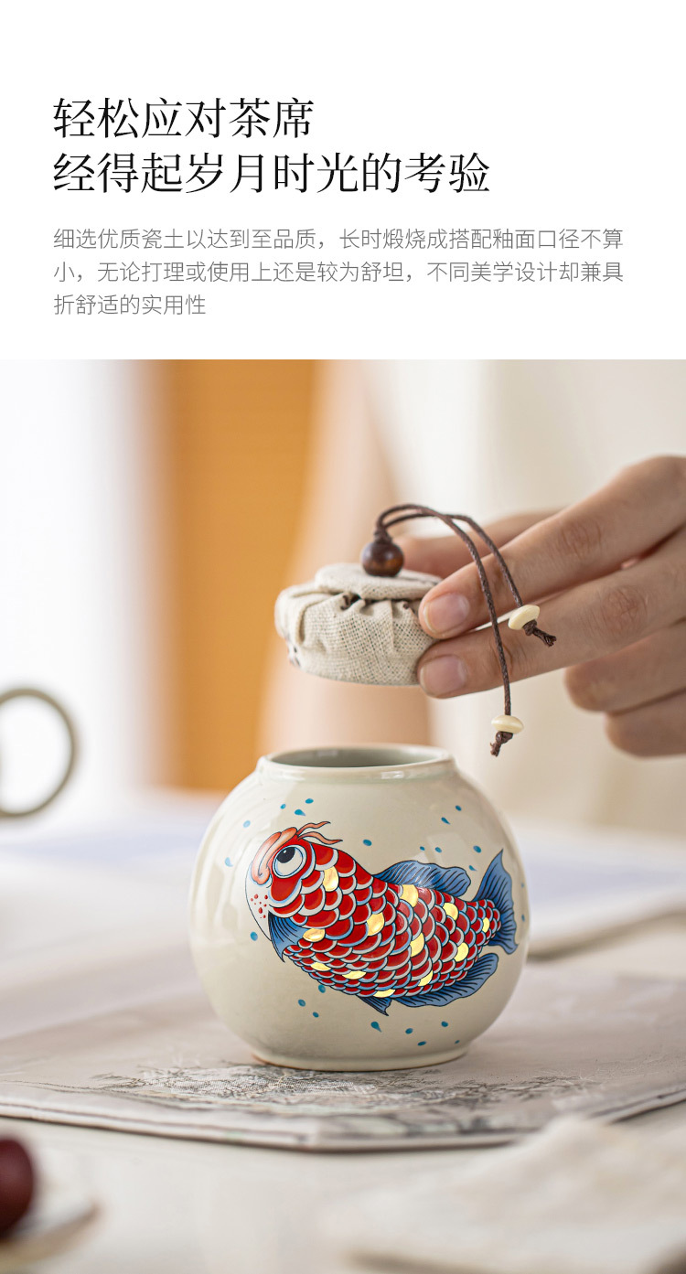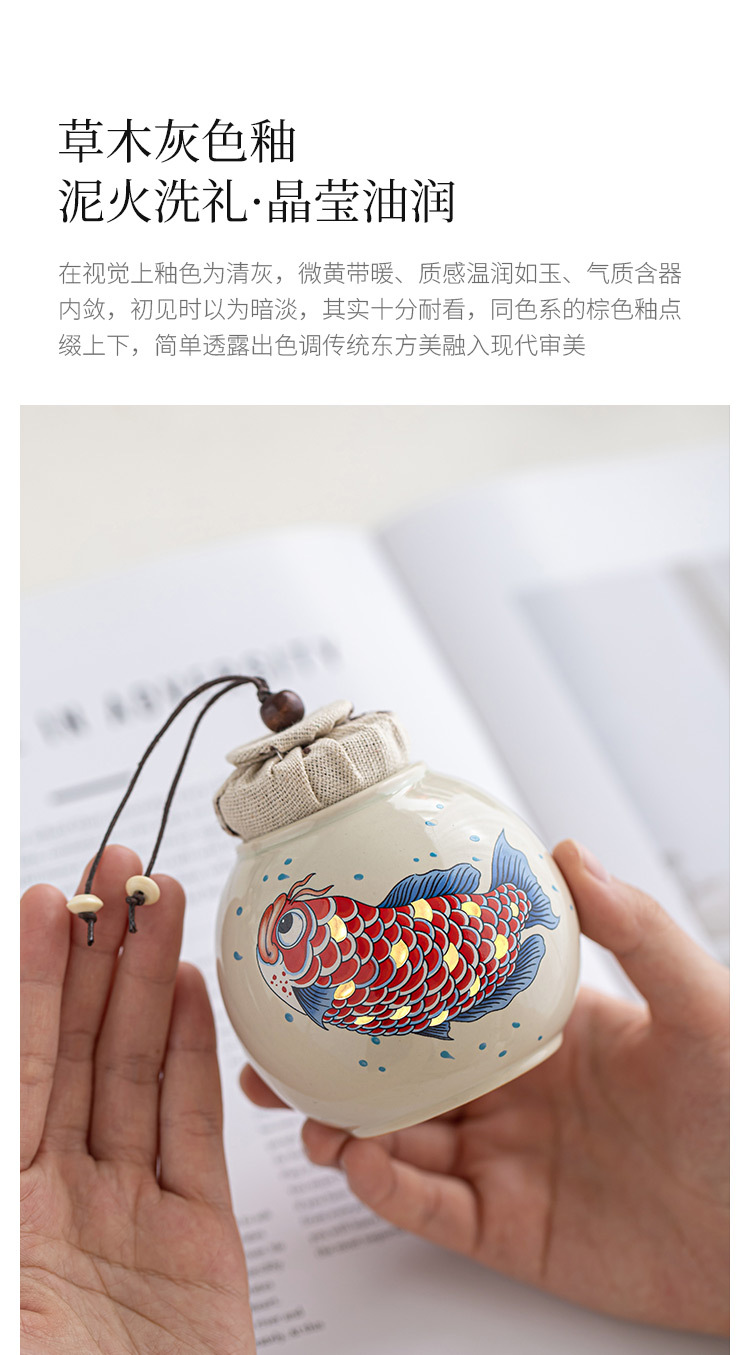Thùng trà kho báu tròn màu xám thực vật Thùng trà nhỏ lưu trữ cao cấp Jinyu Mantang Thùng trà cầm tay Thùng kín Hộp trà Thùng trà