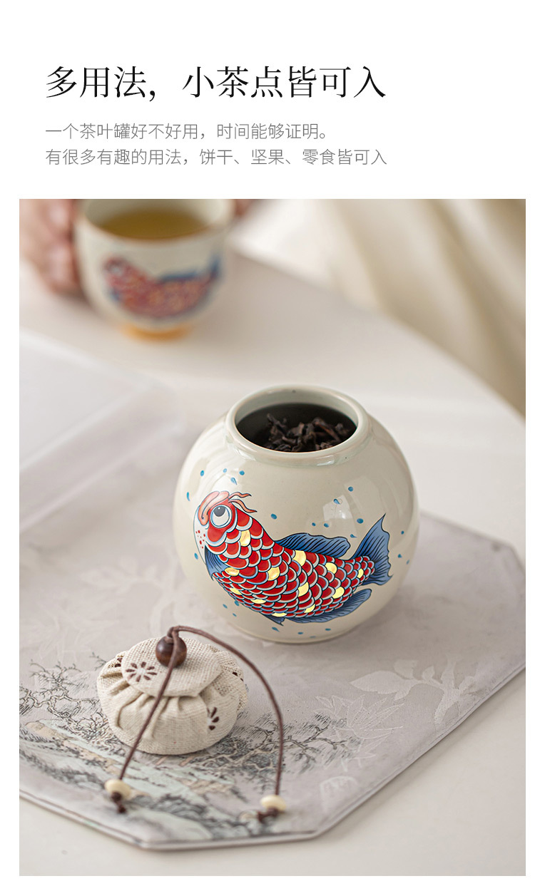 - Thùng trà kho báu tròn màu xám thực vật Thùng trà nhỏ lưu trữ cao cấp Jinyu Mantang Thùng trà cầm tay Thùng kín Hộp trà Thùng trà