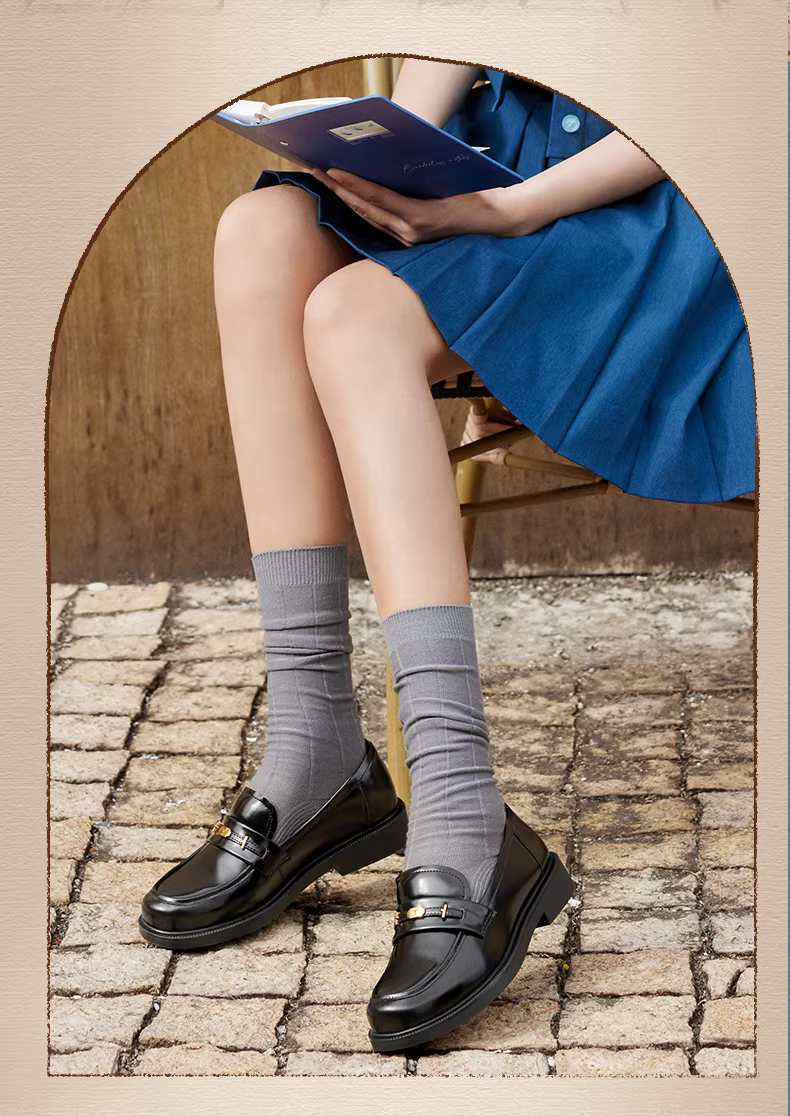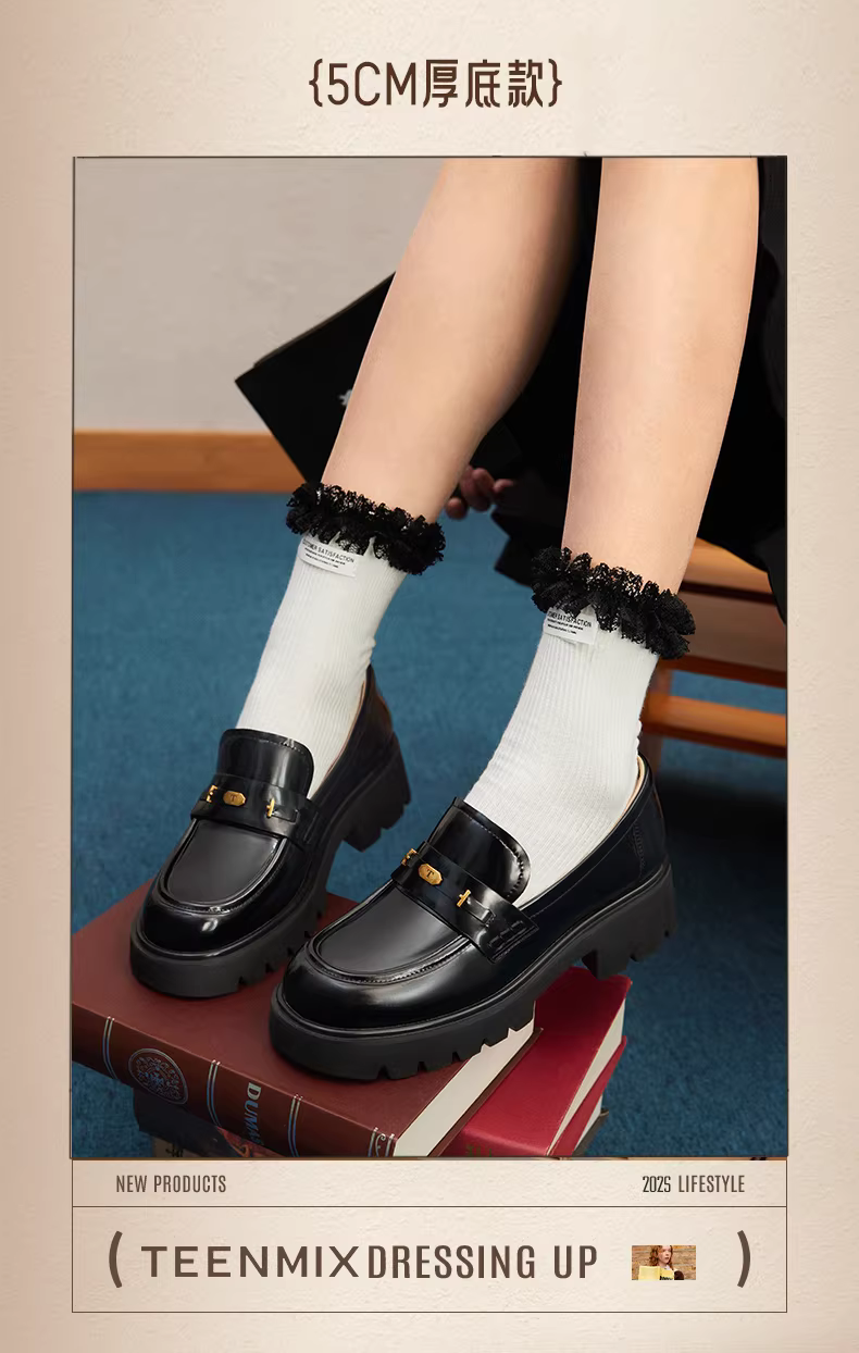 - Tianmeiyi Academy British Ivy League Loafers Giày đế bằng Giày nữ phong cách retro Giày đơn Giày da nhỏ Mùa xuân Phong cách mới