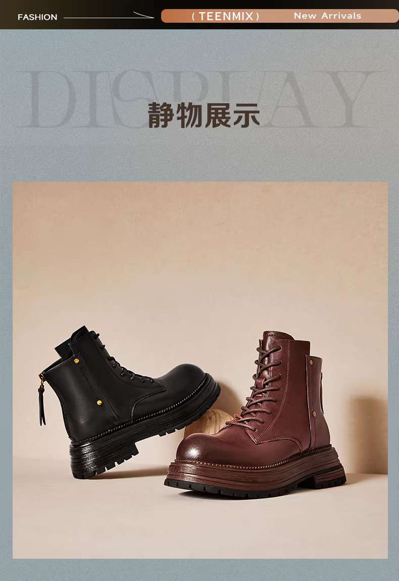 - Tianmeiyi Breath of the Wild retro đế dày tăng chiều cao lót lông cừu Giày bốt Martin nữ giày bốt ngắn thông thường mùa đông phong cách mới