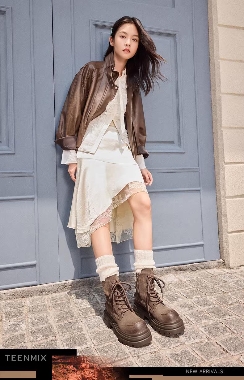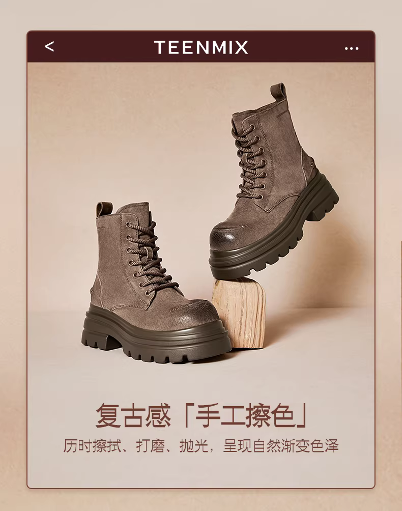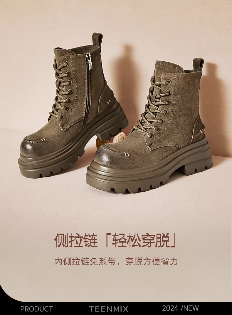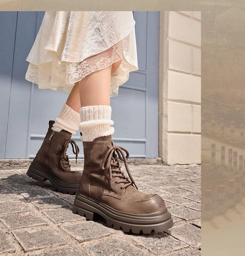 - Tianmeiyi Breath of the Wild retro giày bốt Martin đế dày lót lông cừu dành cho nữ giày đi làm ngoài trời giày bốt ngắn mùa đông phong cách mới