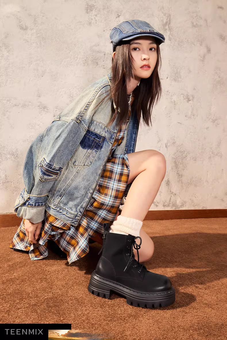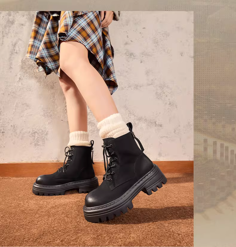- Tianmeiyi đế dày lót lông cừu Giày bốt Martin đi làm ngoài trời giày bốt màu vàng giày nữ cổ điển bốt ngắn mùa đông phong cách mới