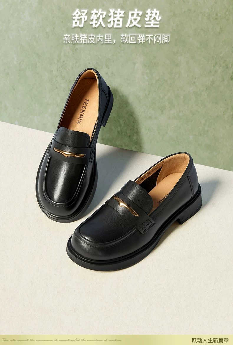 - Tianmeiyi đế phẳng kiểu Anh JK giày lười retro giày đơn nữ da nhỏ giày mùa xuân mẫu mới COY35AA5