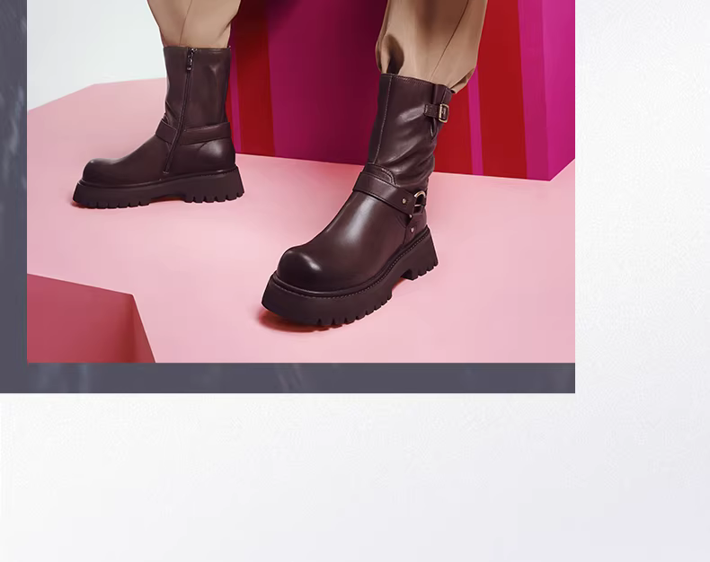 - Tianmeiyi retro đế dày lót lông cừu đi giày bốt phương Tây giày nữ giày bốt ngắn thông thường giày da mùa đông phong cách mới