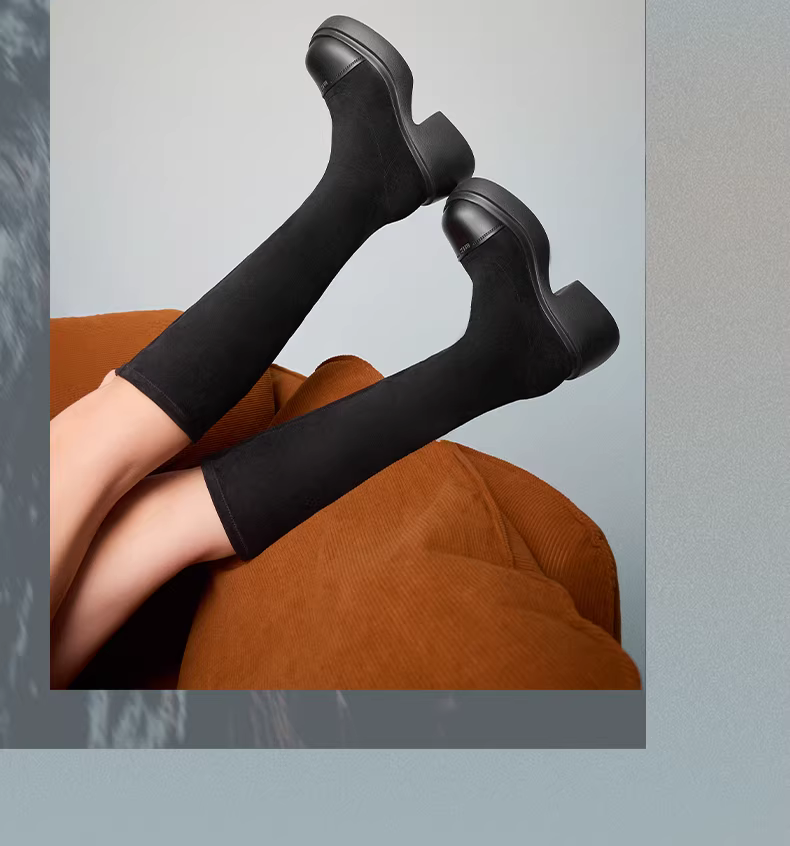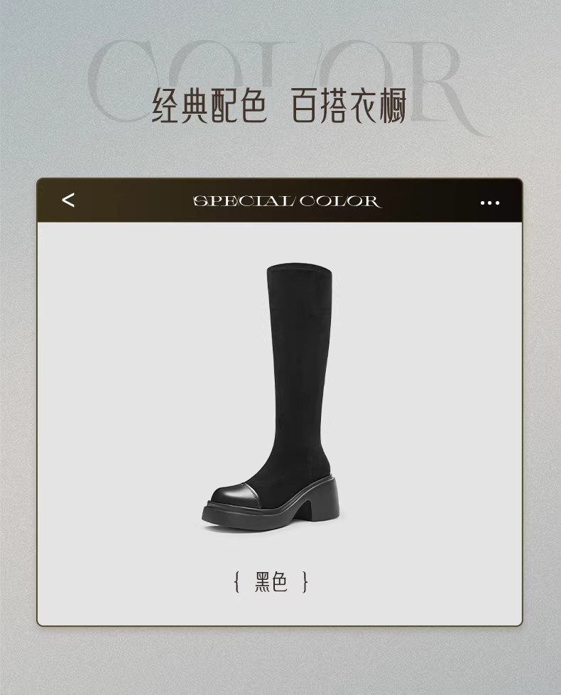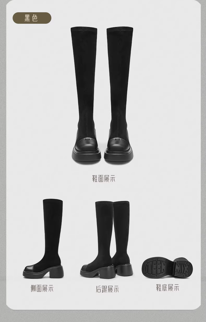 - Tianmeiyi retro đế dày tăng chiều cao lót lông cừu co giãn thời trang giày bốt nữ cao cổ mùa đông mẫu mới CPB81DG4