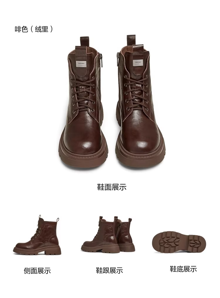 Tianmeiyi retro đế dày tăng chiều cao lót lông cừu Giày bốt Martin nữ bốt ngắn thông thường bốt da mùa đông mẫu mới BK062DD4