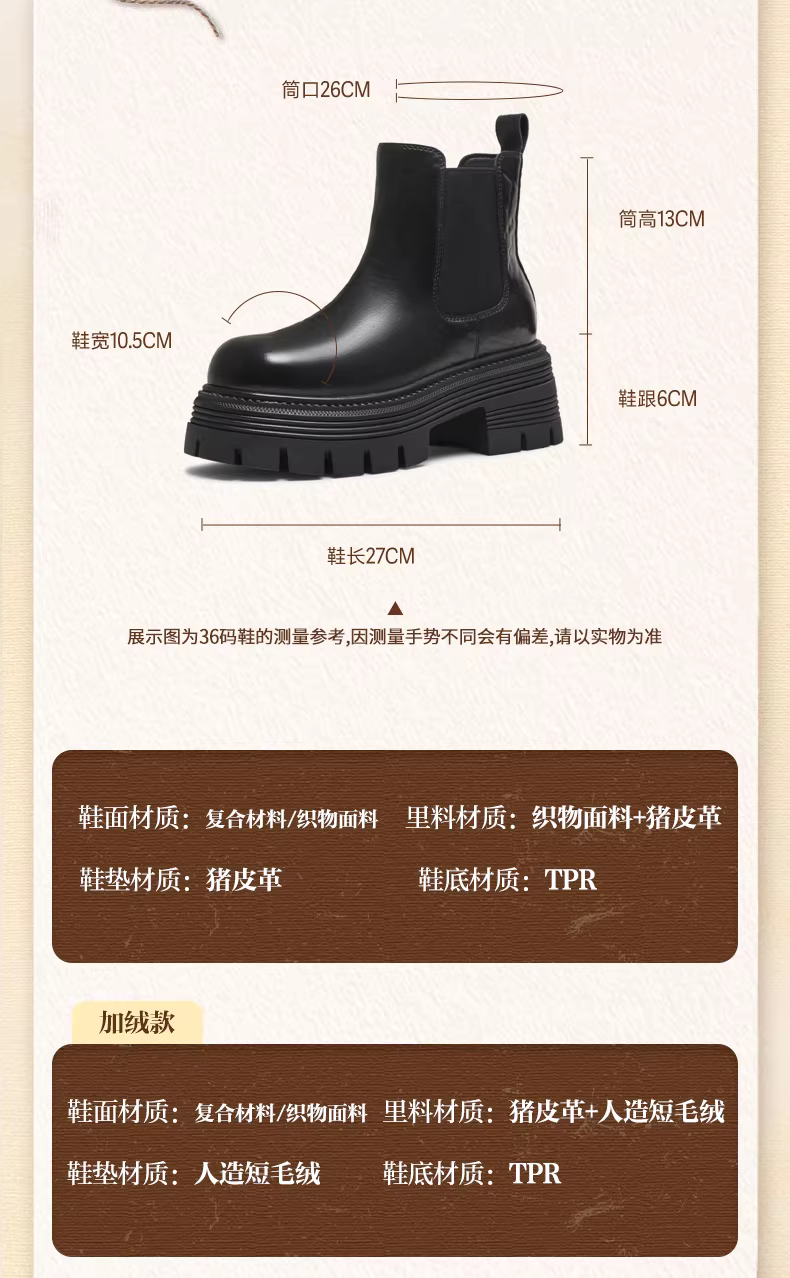 - Tianmeiyi retro đế dày tăng chiều cao lót lông cừu Giày Chelsea nữ mùa đông mới giày bốt mỏng thời trang giày bốt ngắn
