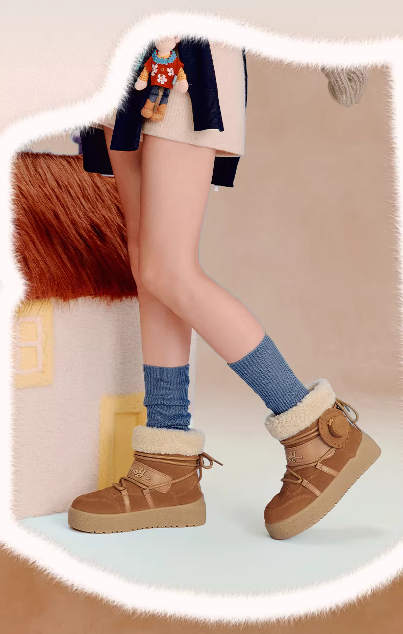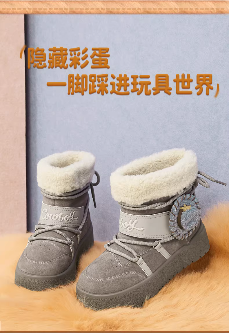 Tianmeiyi Toy Story co-branded Woody plush latte giày bốt đế dày lót lông cừu giày cotton giày bốt ngắn mới dành cho nữ