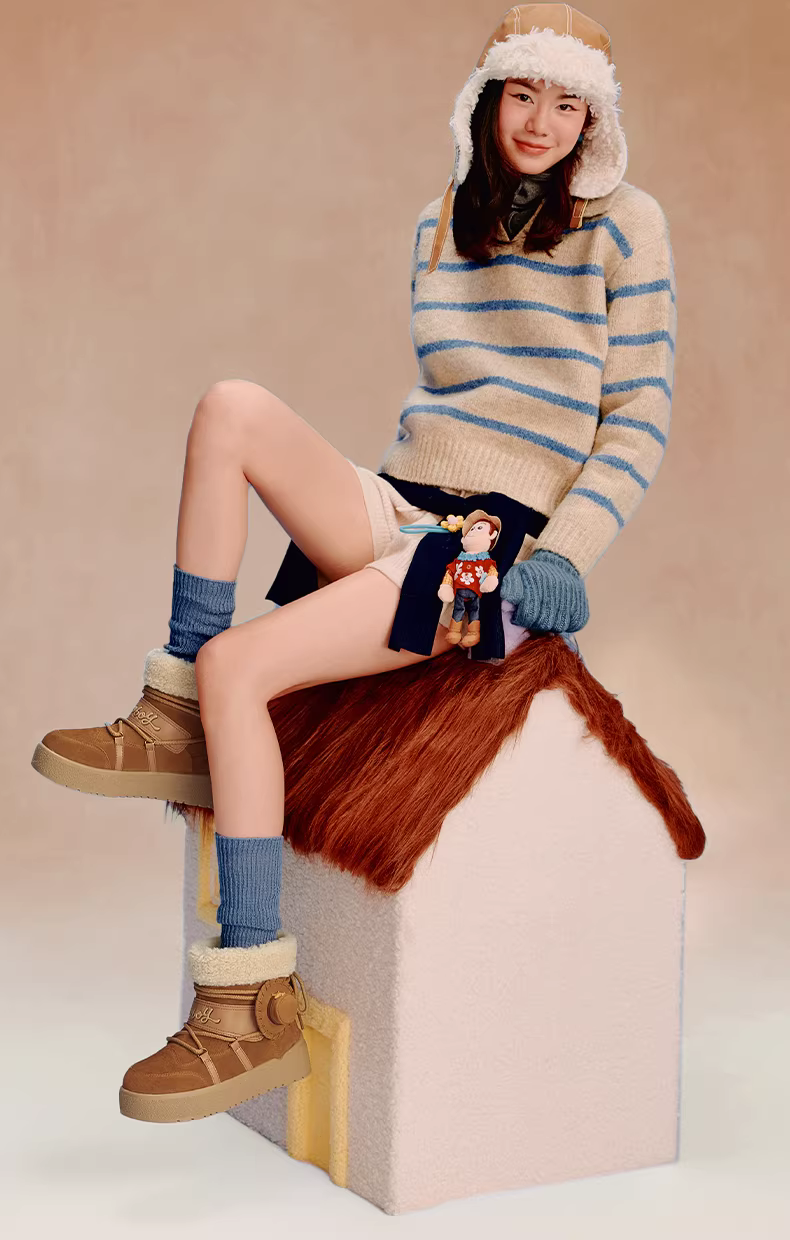 - Tianmeiyi Toy Story co-branded Woody plush latte giày bốt đế dày lót lông cừu giày cotton giày bốt ngắn mới dành cho nữ