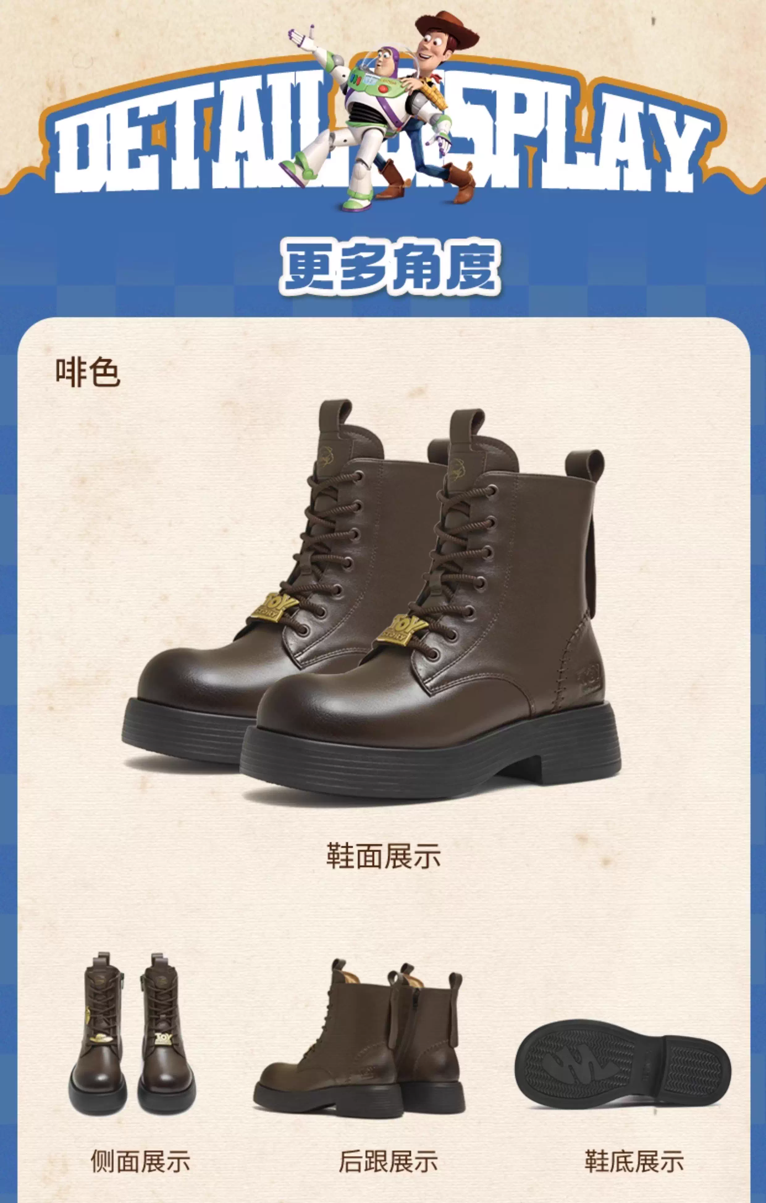 - Tianmeiyi Toy Story đồng thương hiệu Woody retro giày bốt Martin đế dày kiểu Anh giày nữ mùa thu mới giày bốt ngắn thông thường
