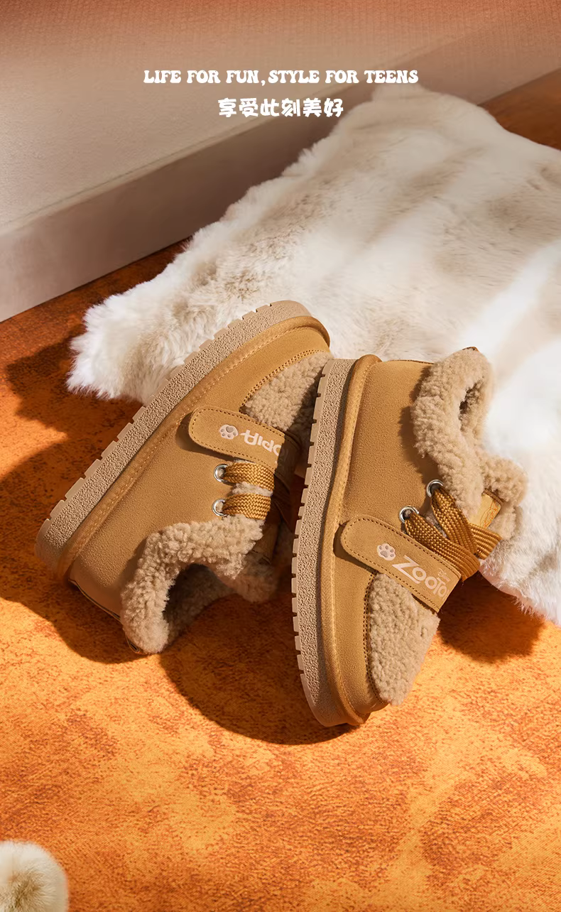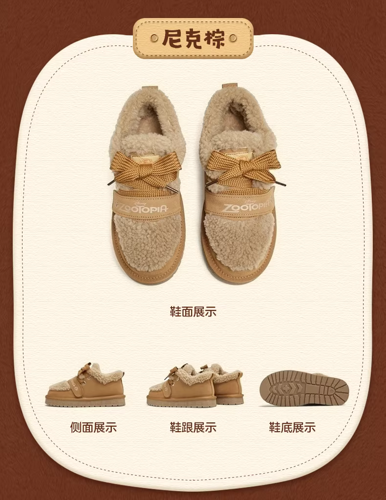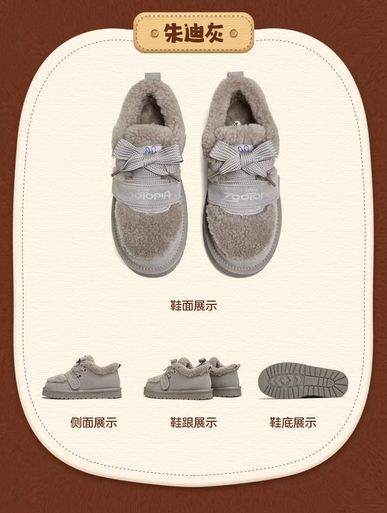 - Tianmeiyi Zootopia Hợp tác Brownie Giày bốt đi tuyết lót lông cừu Giày cotton lông xù Giày bốt ngắn nữ mùa đông Phong cách mới