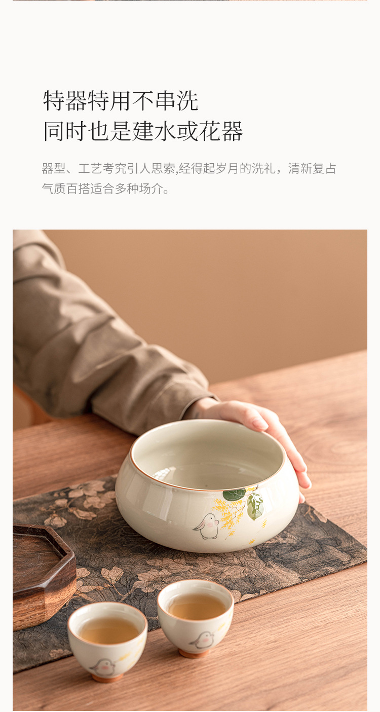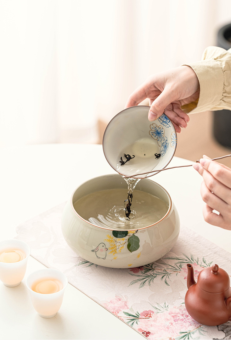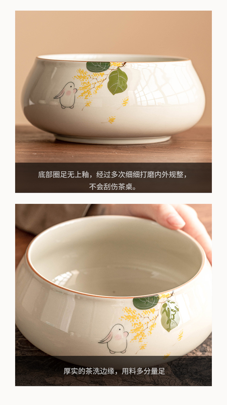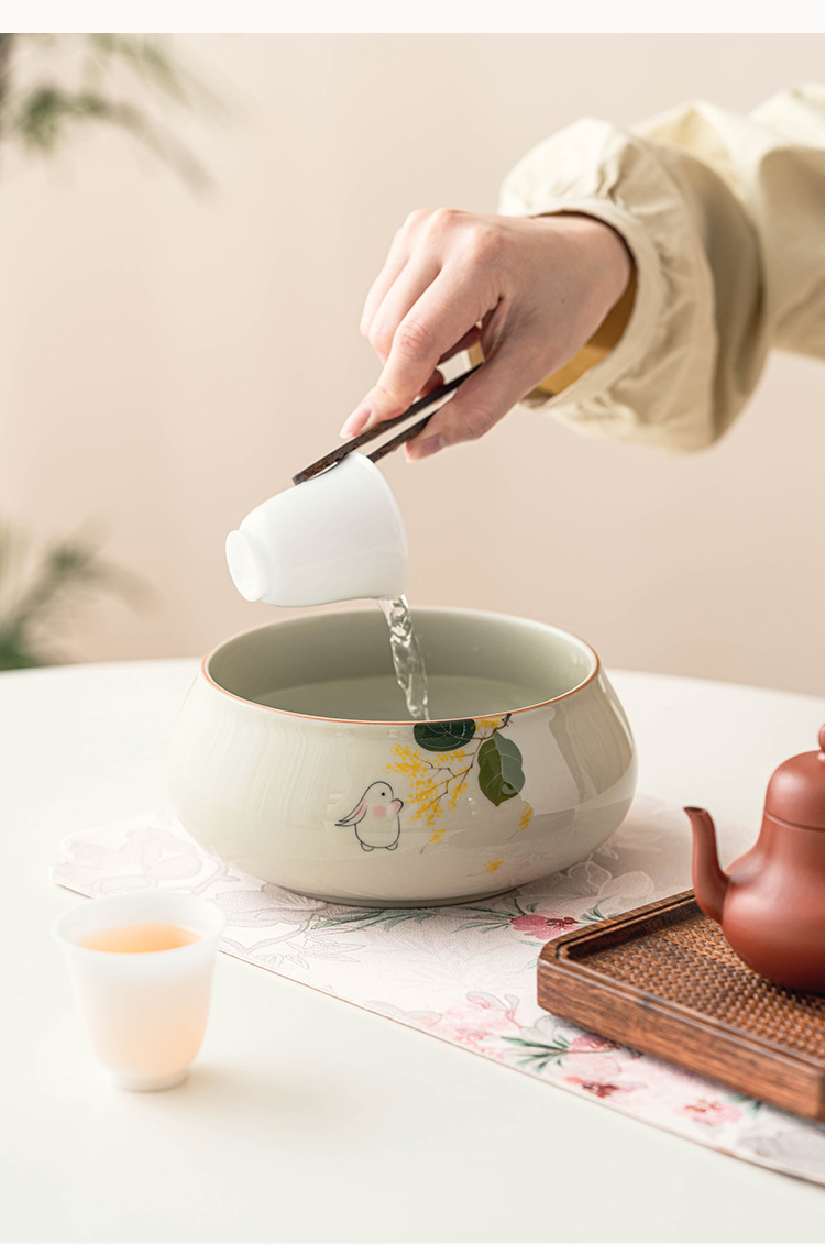 Tinh khiết vẽ tay mặt trăng thỏ Jianshui trà rửa lớn Trung Quốc gốm sứ Kung Fu Phụ Kiện Bộ trà bát nước Biển Trà một thùng bã trà