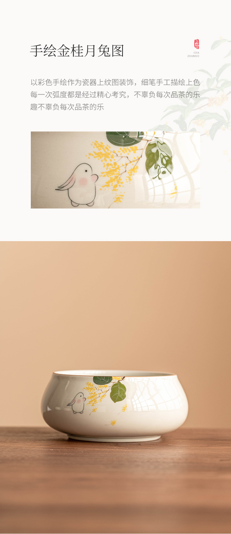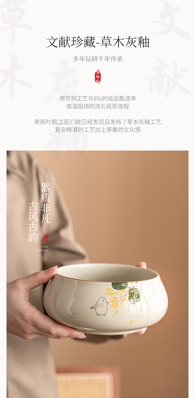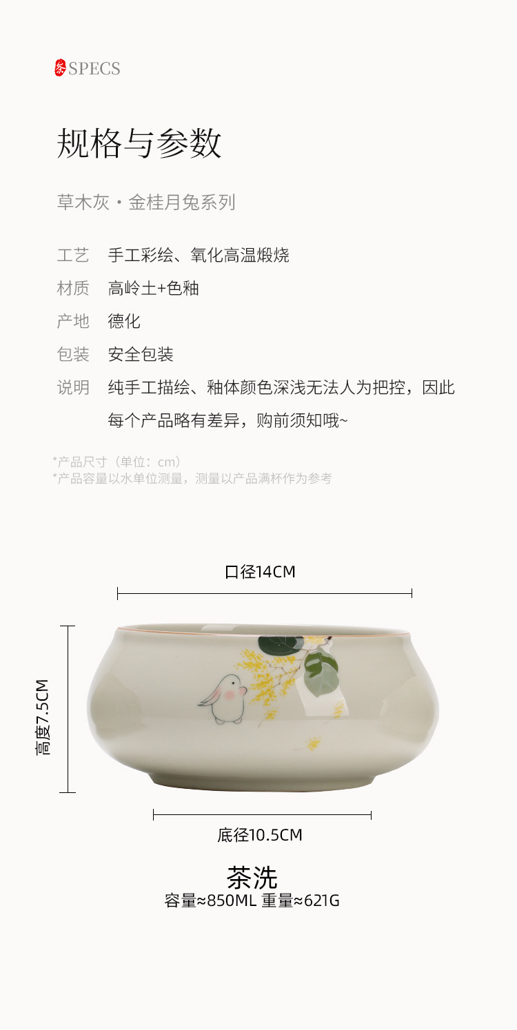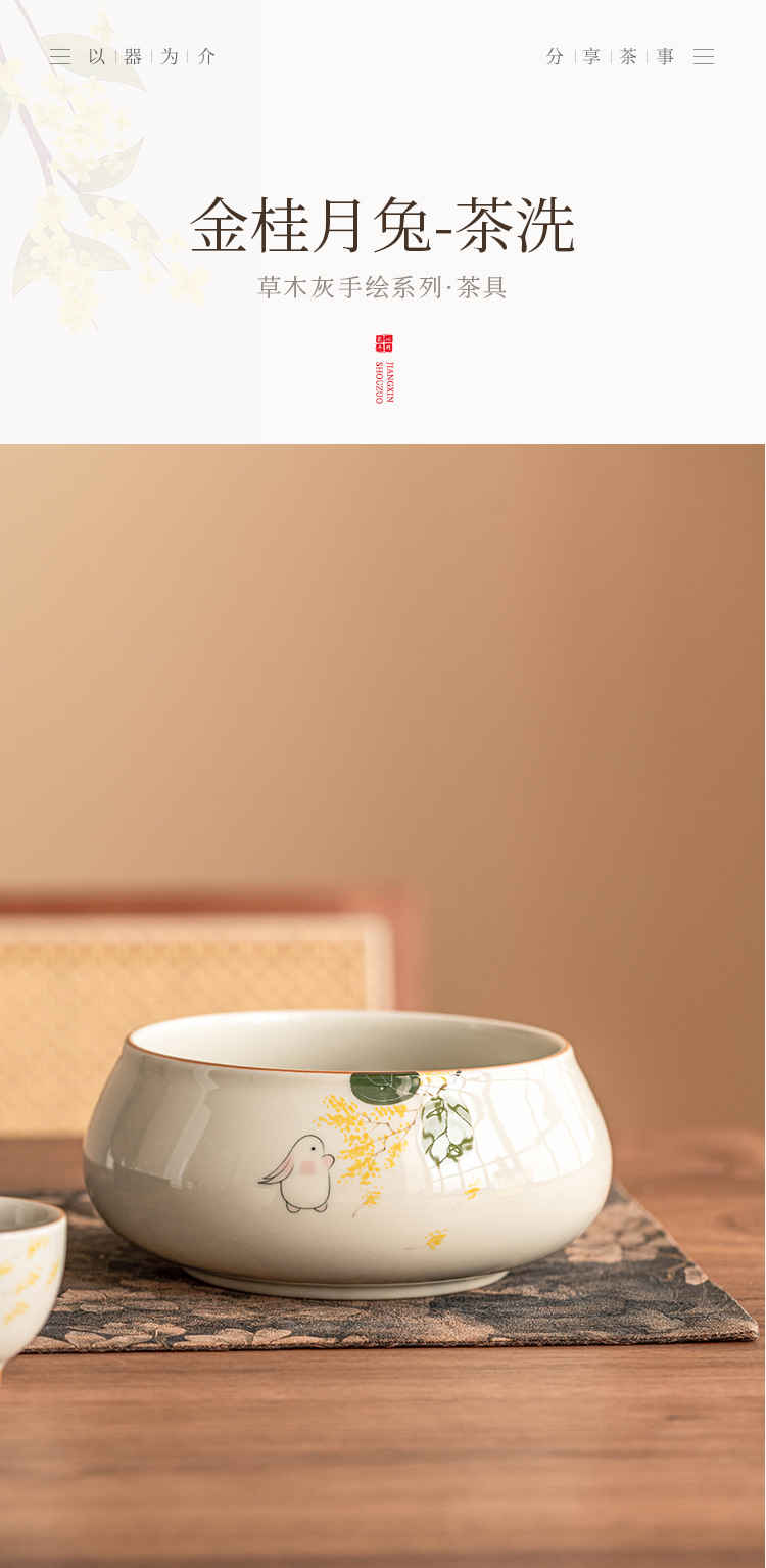 Tinh khiết vẽ tay mặt trăng thỏ Jianshui trà rửa lớn Trung Quốc gốm sứ Kung Fu Phụ Kiện Bộ trà bát nước Biển Trà một thùng bã trà