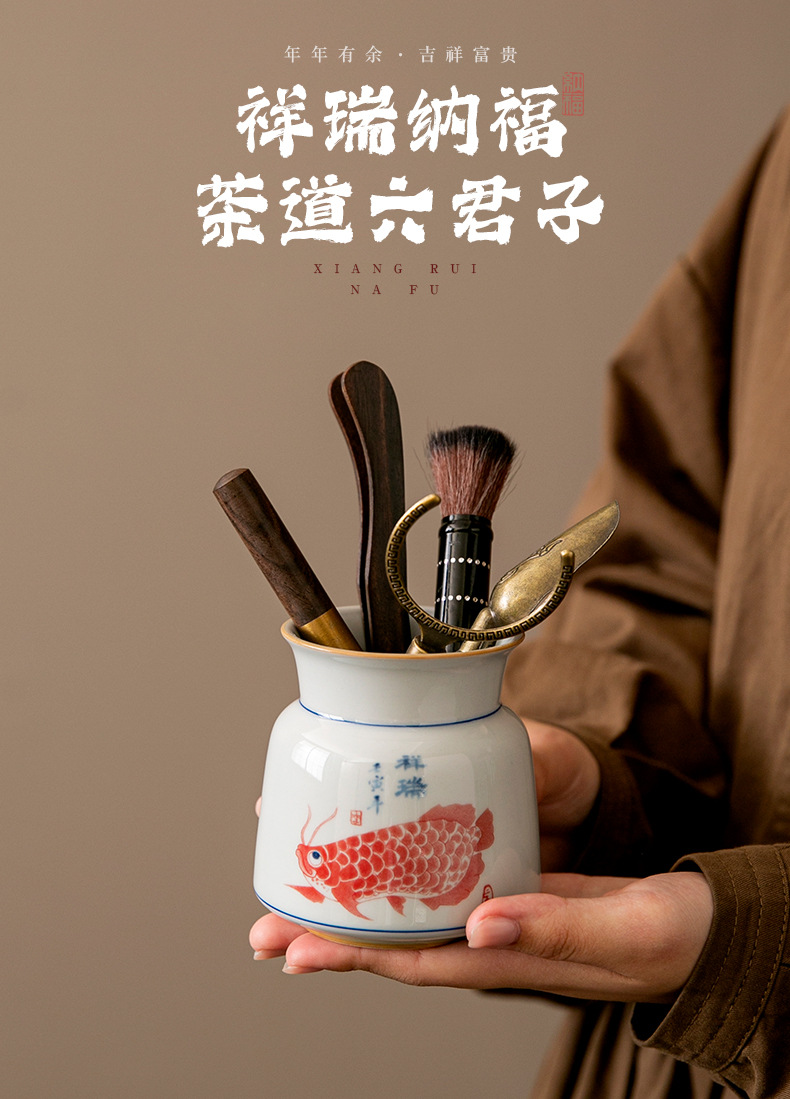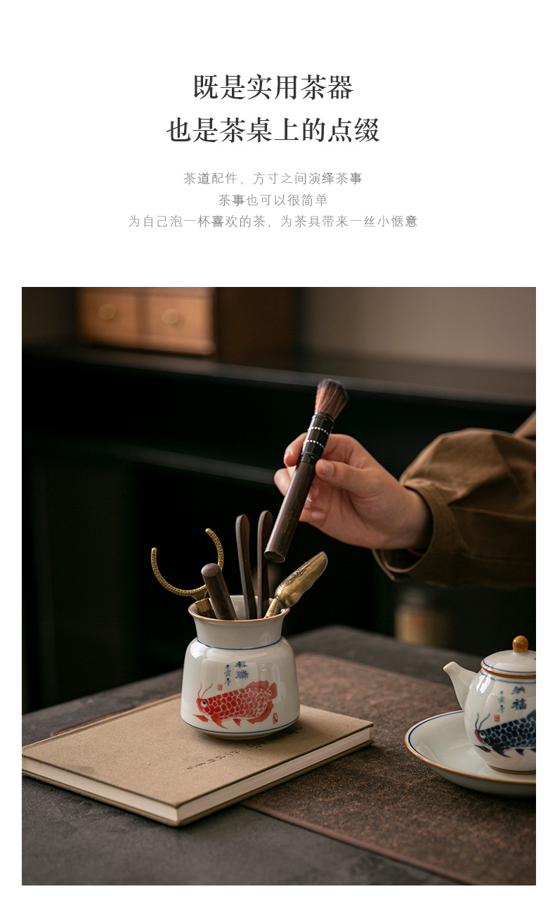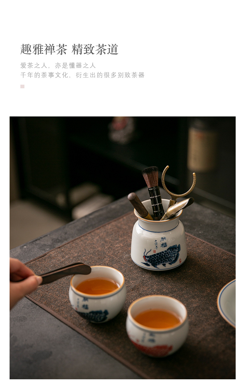 - Trà đạo sáu quý ông rồng cá gỗ mun gốm sứ gia dụng kim trà thìa trà kẹp trà bộ trà Kung Fu phụ kiện vật dụng đựng đồ