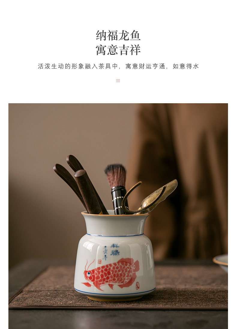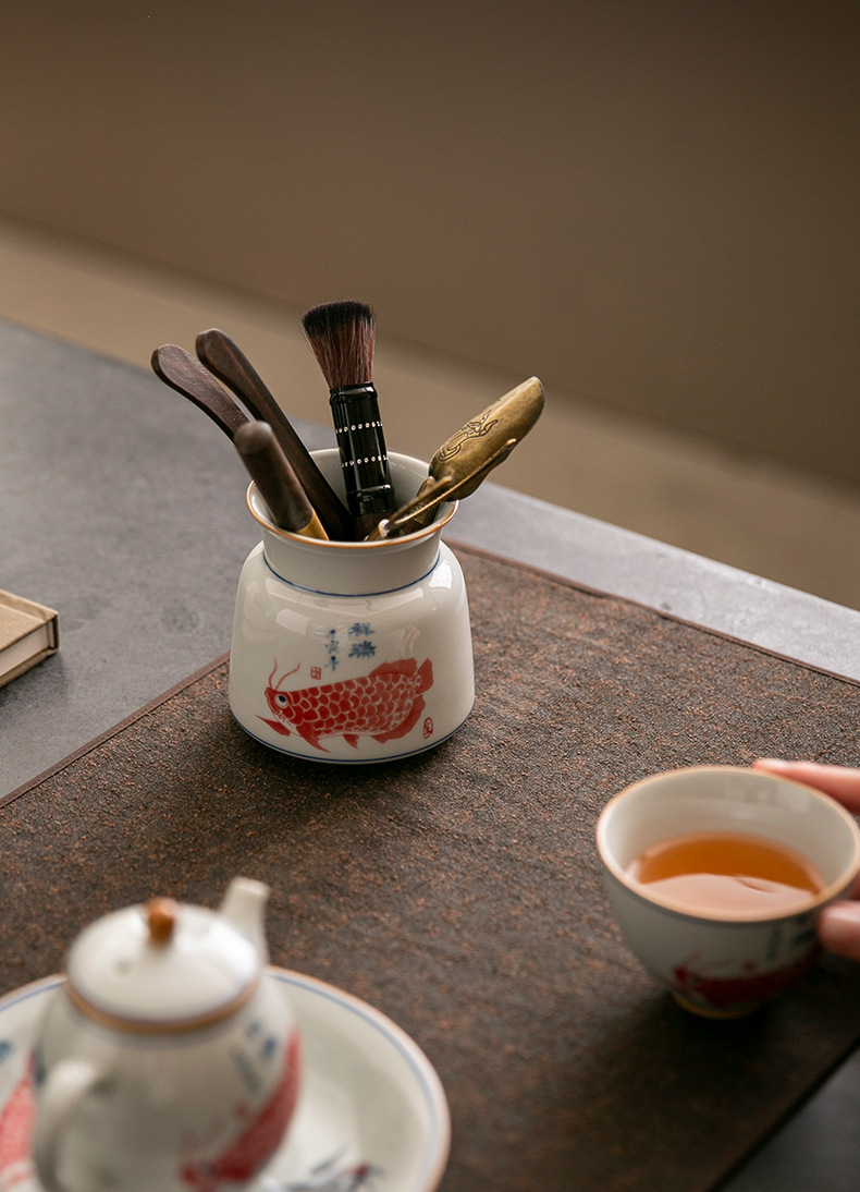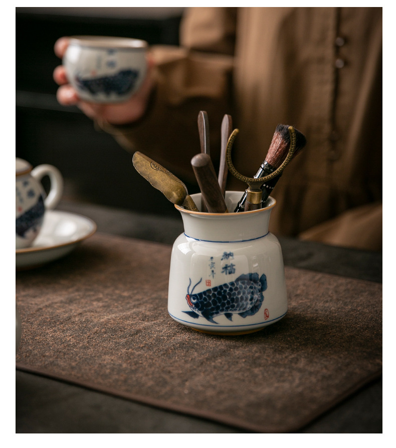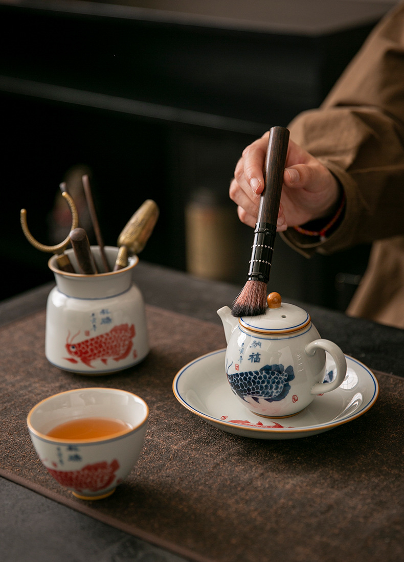 - Trà đạo sáu quý ông rồng cá gỗ mun gốm sứ gia dụng kim trà thìa trà kẹp trà bộ trà Kung Fu phụ kiện vật dụng đựng đồ