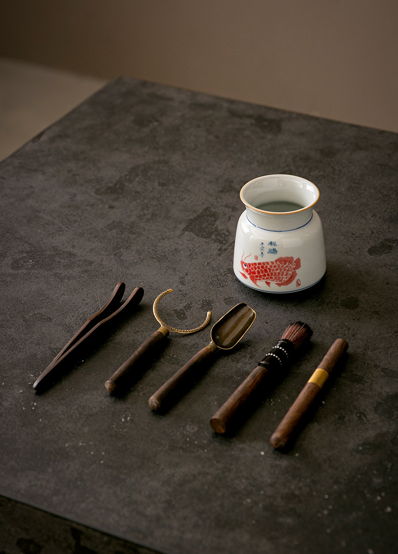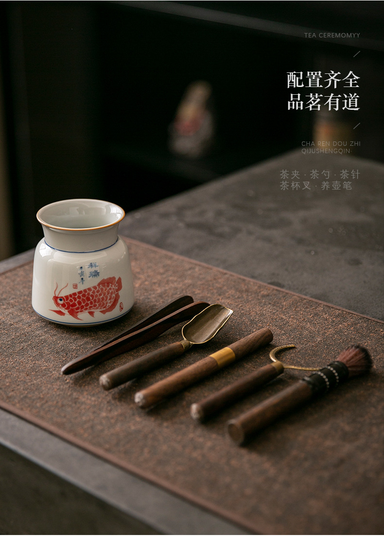 Trà đạo sáu quý ông rồng cá gỗ mun gốm sứ gia dụng kim trà thìa trà kẹp trà bộ trà Kung Fu phụ kiện vật dụng đựng đồ