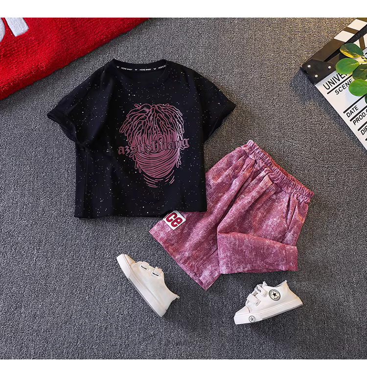 Trang phục mùa hè cho bé trai Áo thun ngắn tay 20024 phong cách mùa hè mới Quần áo trẻ em sành điệu và đẹp trai Quần áo trẻ em thời trang