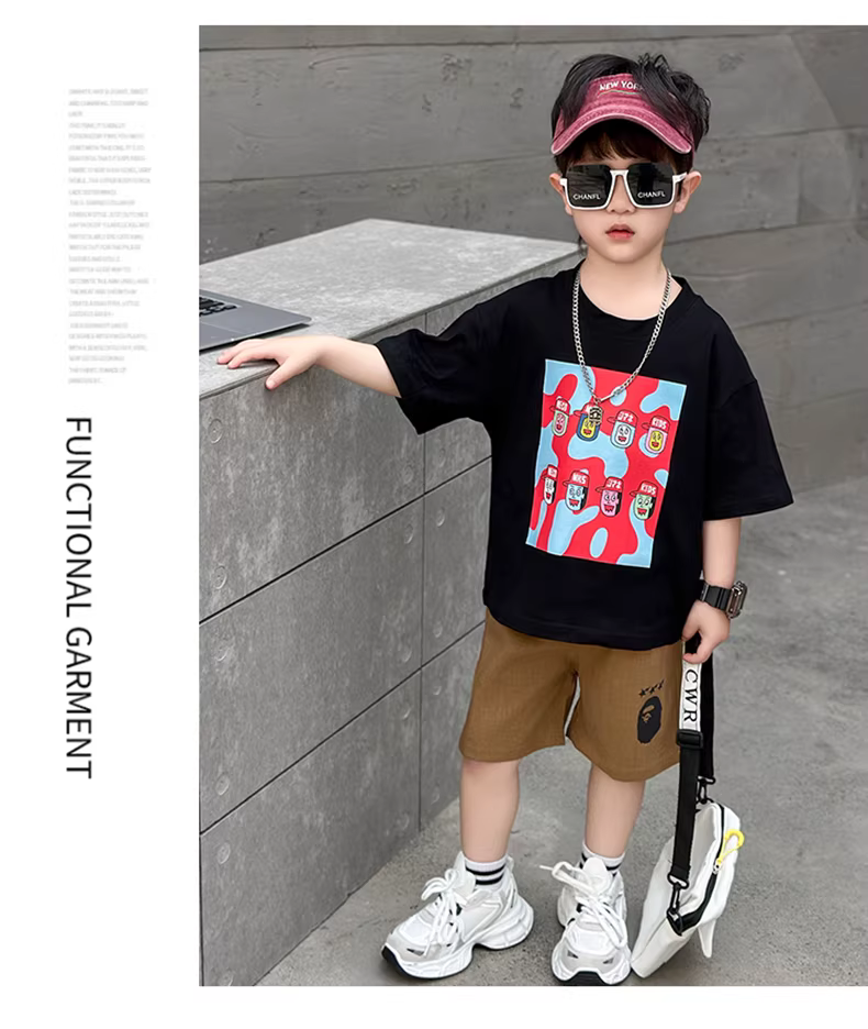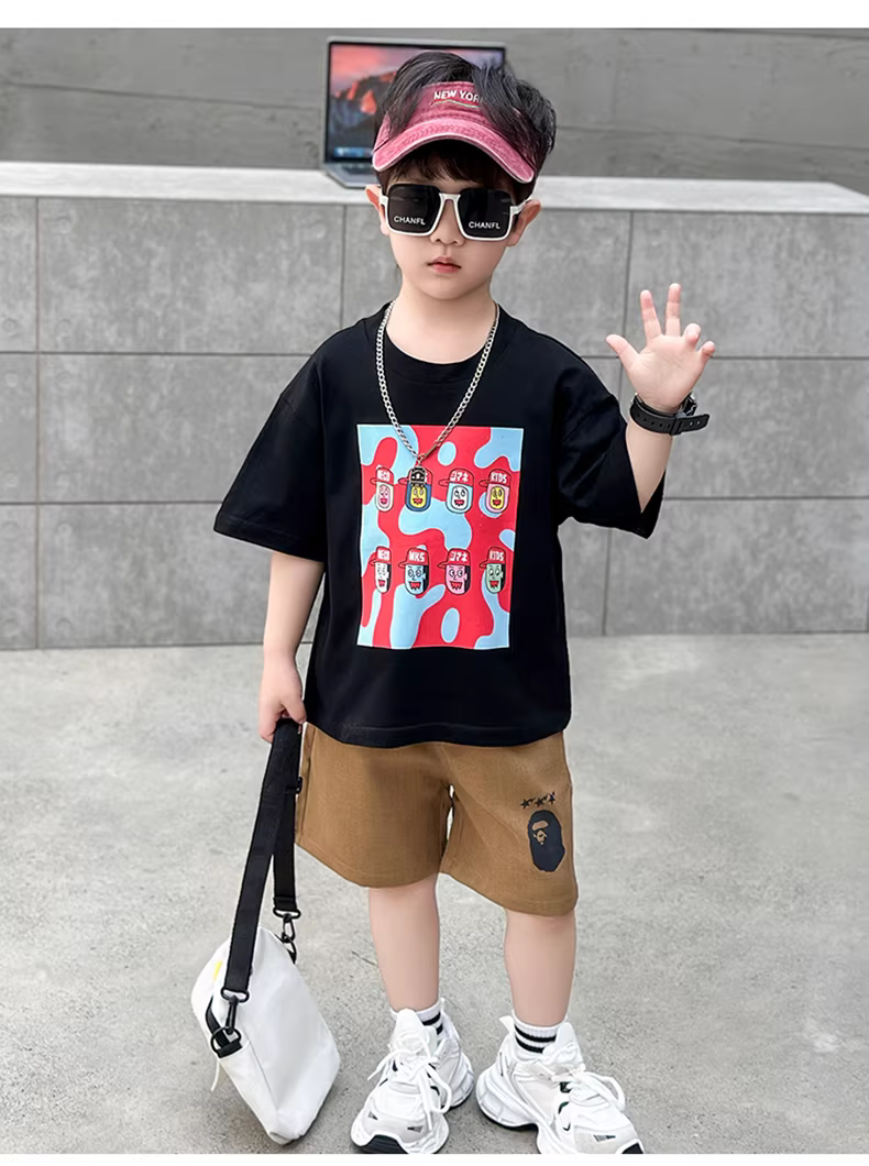- Trang phục mùa hè cho bé trai đẹp trai năm 2025, kiểu mới dành cho bé trai từ 1-5 tuổi, áo thun ngắn tay thời trang cho mùa hè.