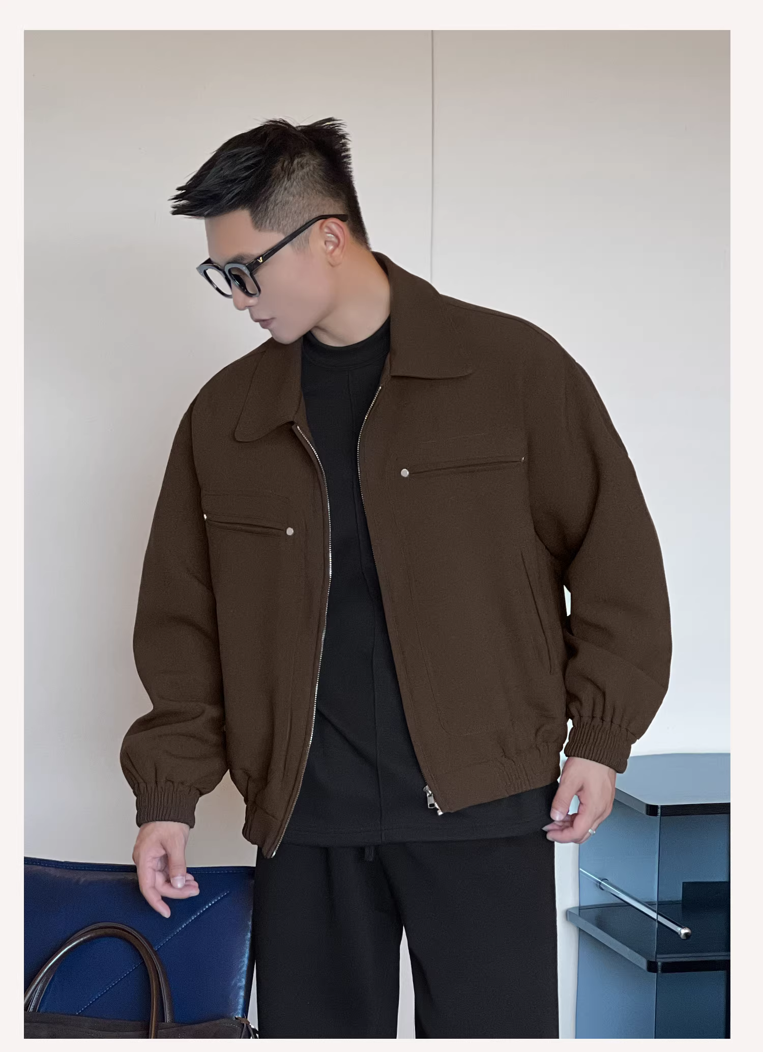 Trang phục số 22: phong cách chàng trai mạnh mẽ, áo khoác thu đông gọn gàng dành cho nam, cao cấp, cá tính và sành điệu, tôn dáng vai rộng, áo khoác gọn gàng.