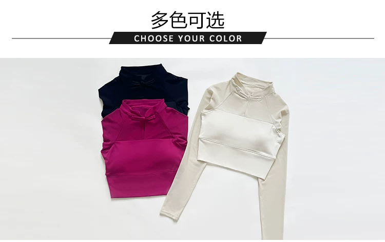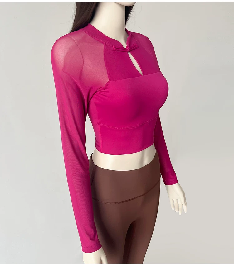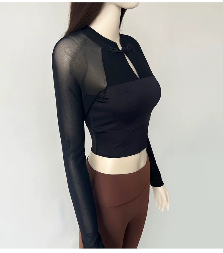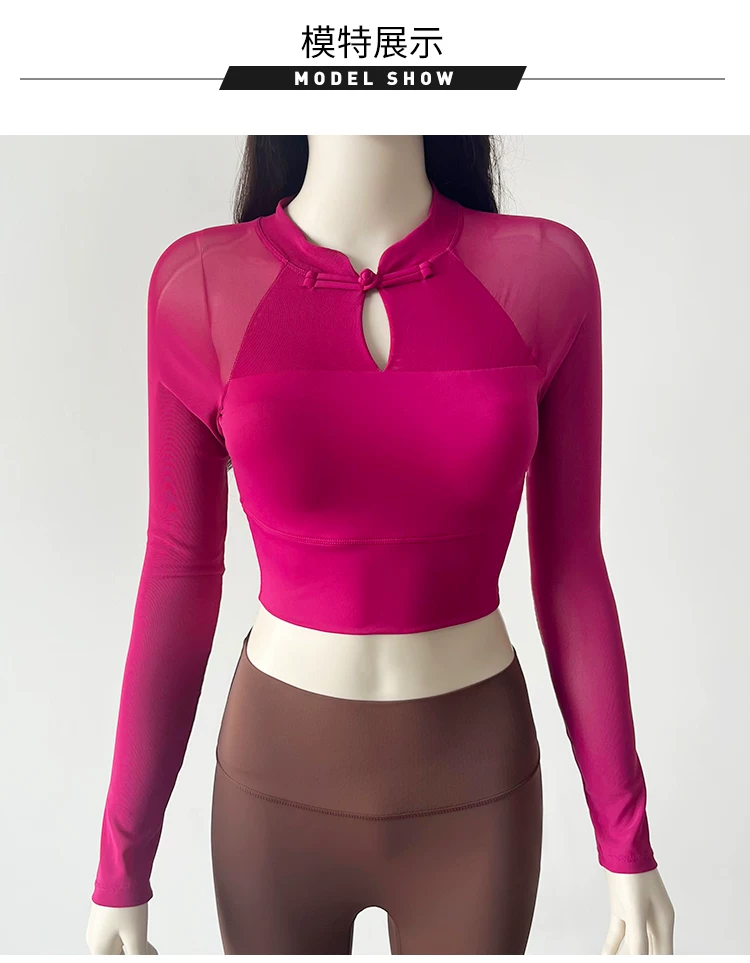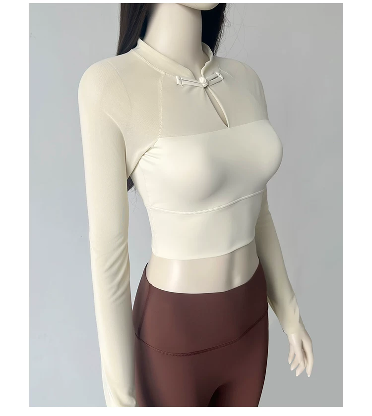 - Trang phục tập yoga có cài cúc phong cách quốc gia, áo thể thao dài tay dành cho nữ mùa thu phong cách mới có miếng đệm ngực, quần áo tập thể dục lưới thoáng khí mùa thu