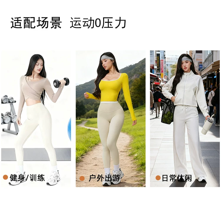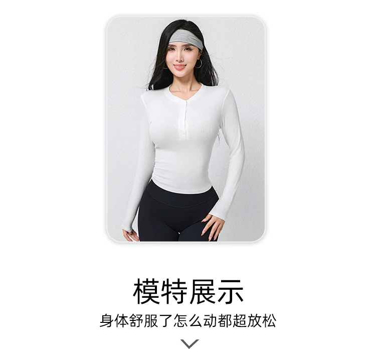 Trang phục tập yoga mới mùa thu dành cho nữ, áo thun dài tay, cổ Henry cổ điển, dáng ôm, trang phục tập thể dục chạy bộ