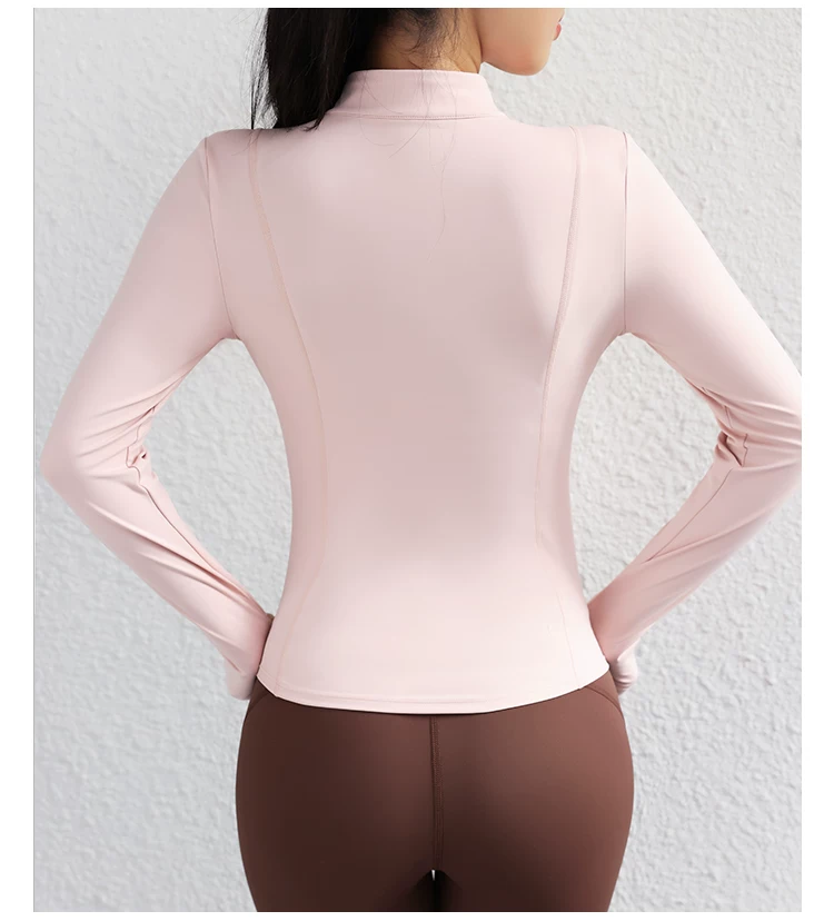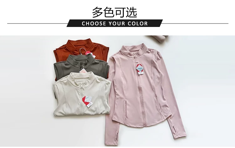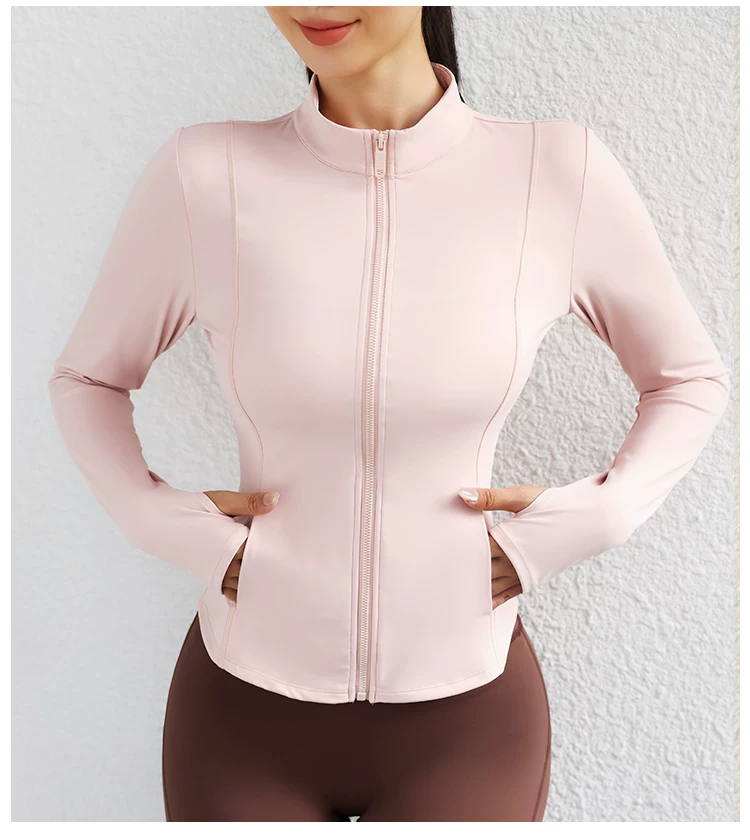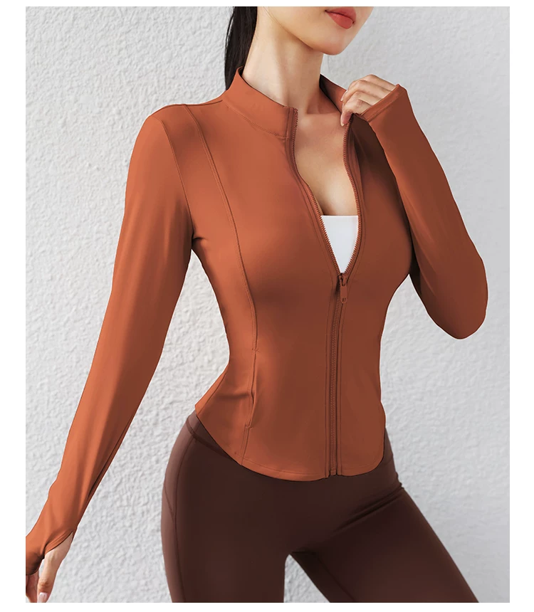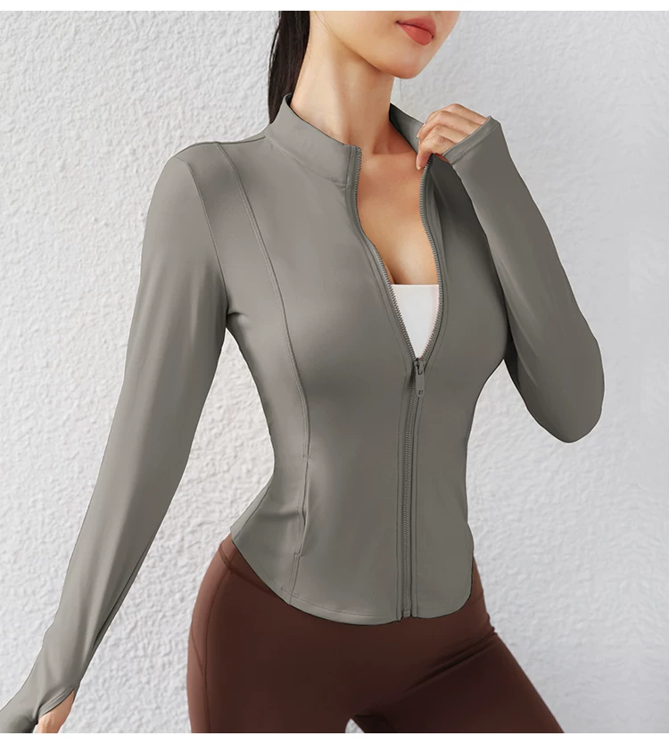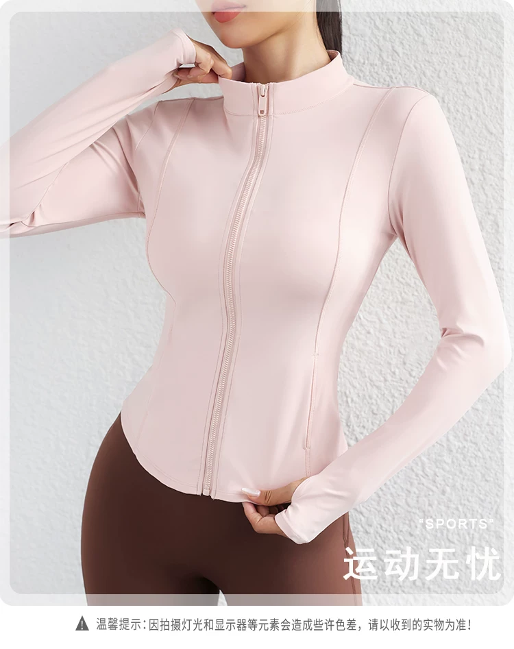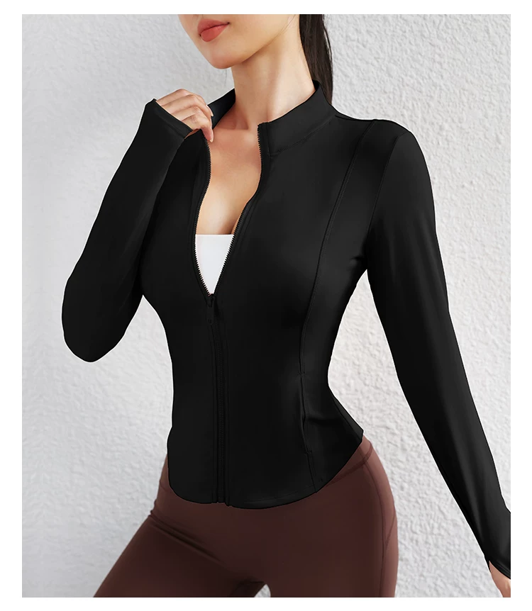 Trang phục tập yoga mùa thu đông dành cho nữ, áo khoác có khóa kéo, áo thể thao, áo khoác ngoài dài tay ôm sát, trang phục tập thể dục chuyên nghiệp chạy bộ