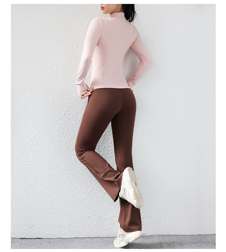 - Trang phục tập yoga mùa thu đông dành cho nữ, áo khoác có khóa kéo, áo thể thao, áo khoác ngoài dài tay ôm sát, trang phục tập thể dục chuyên nghiệp chạy bộ