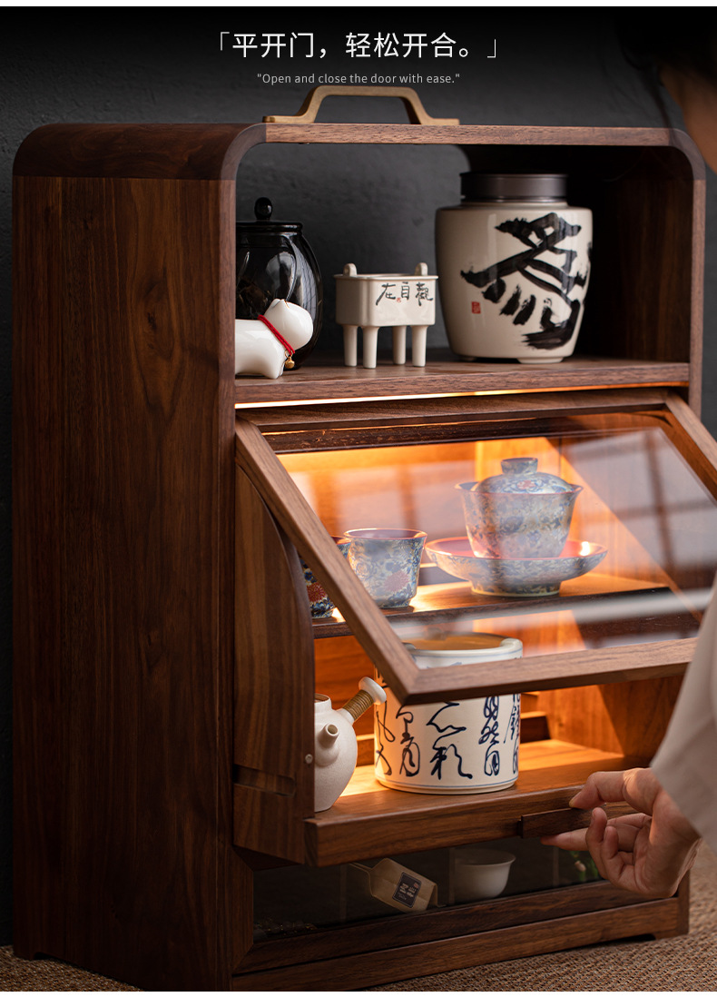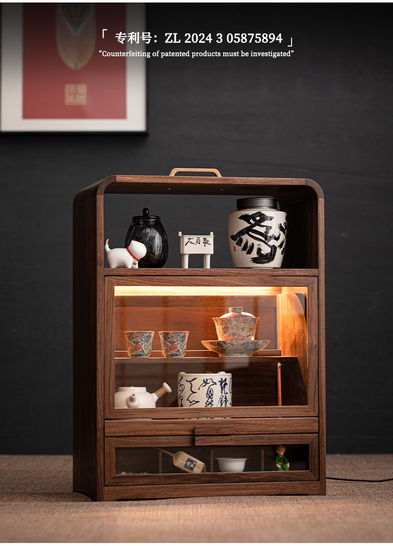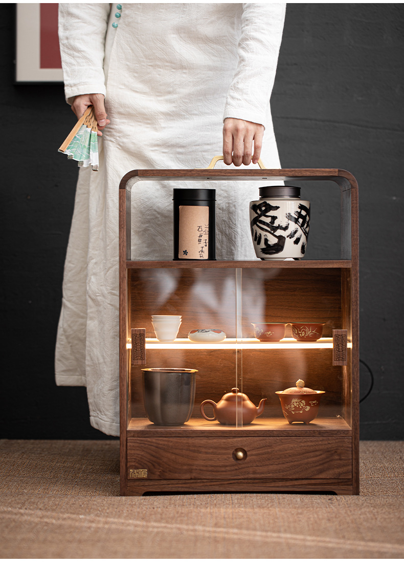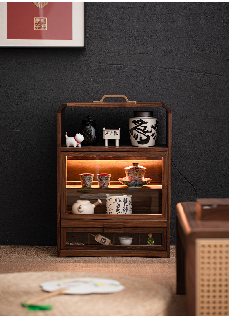 Tủ đựng đồ để bàn đa năng gỗ óc chó, tủ đựng đồ chống bụi gia dụng, đồ trang trí phòng trà, giá để đồ bộ trà