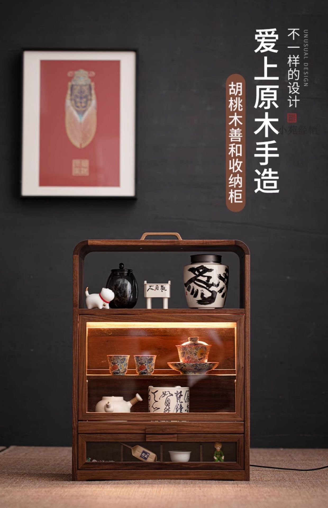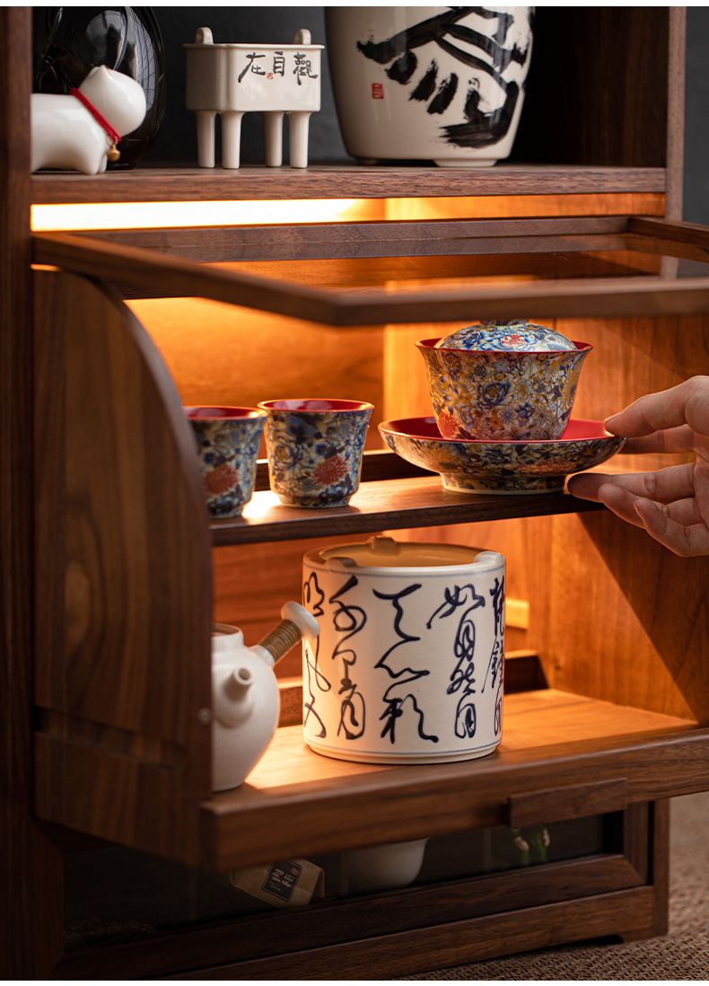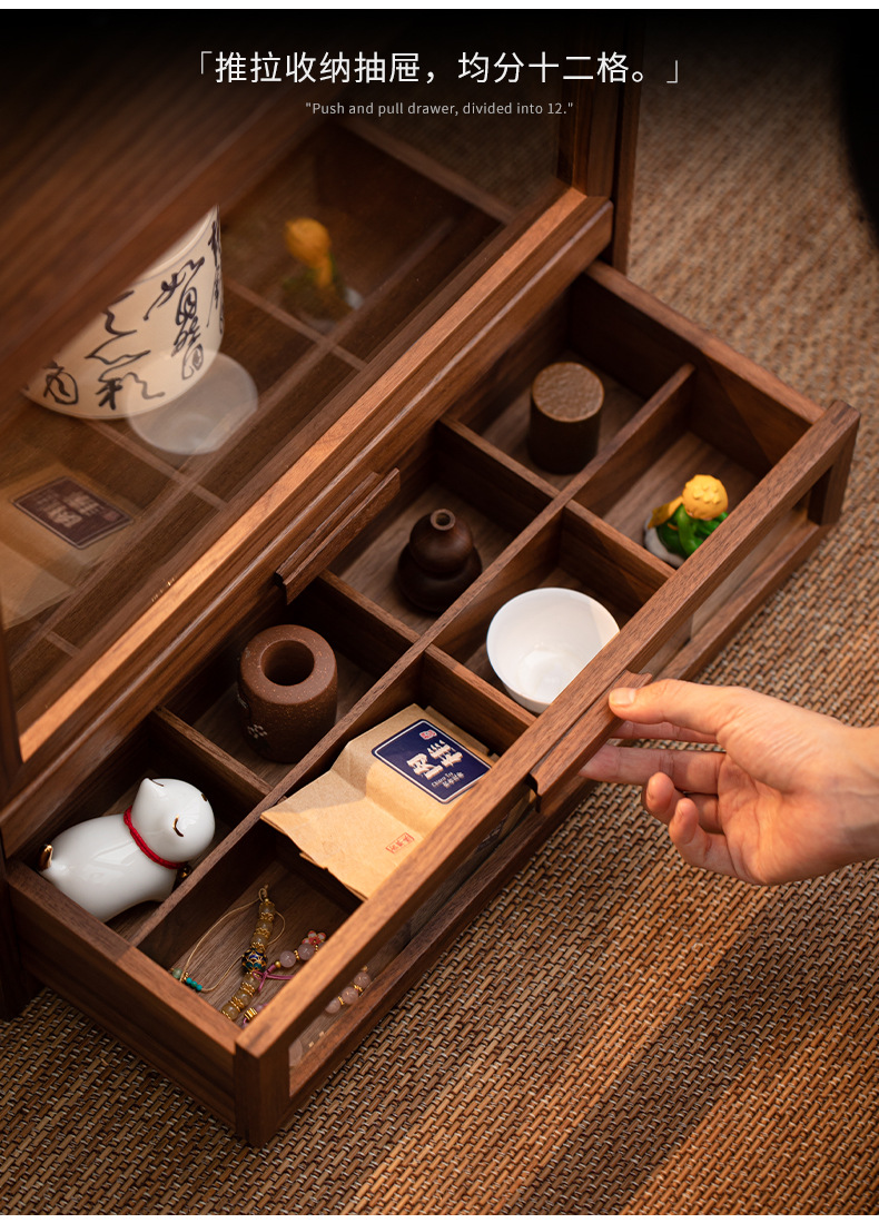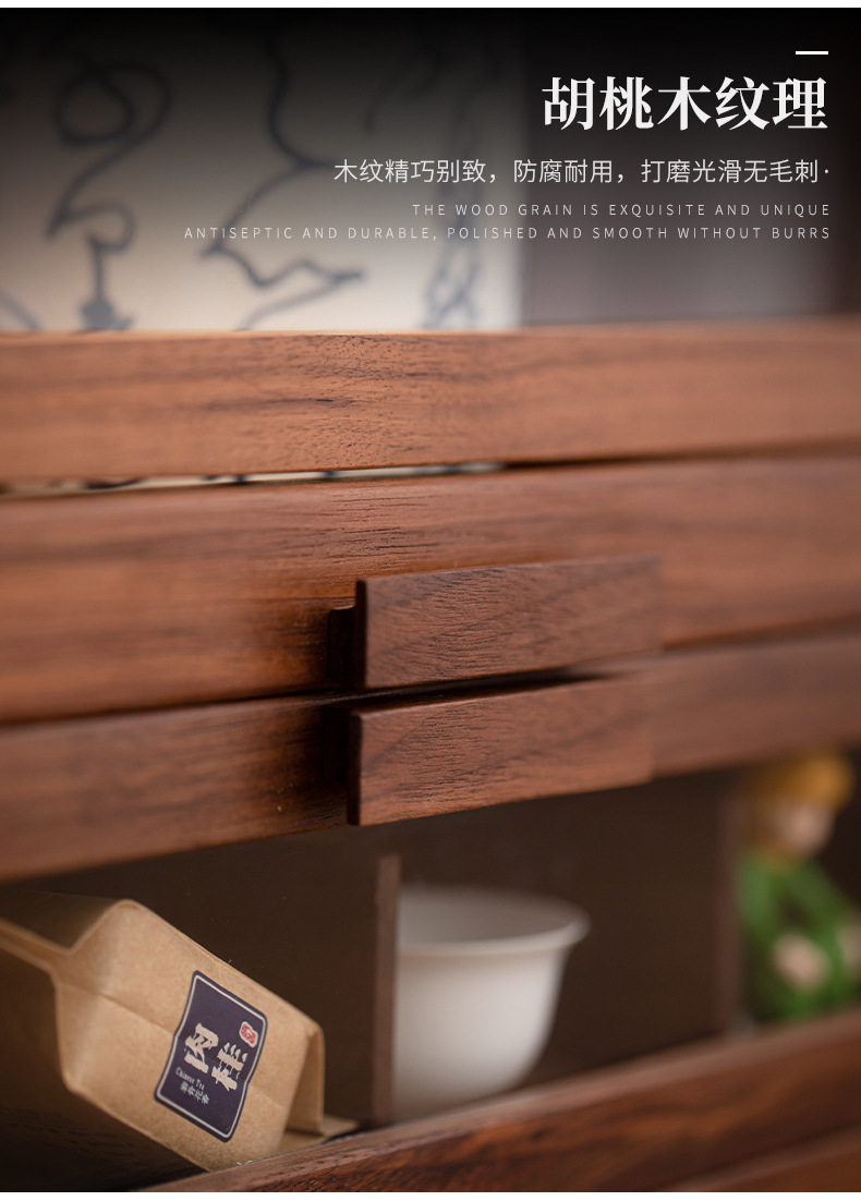 Tủ đựng đồ để bàn đa năng gỗ óc chó, tủ đựng đồ chống bụi gia dụng, đồ trang trí phòng trà, giá để đồ bộ trà