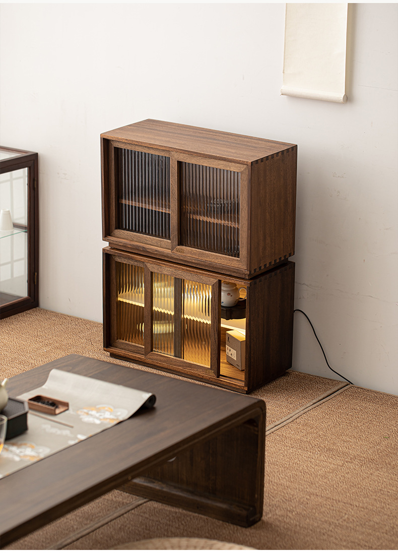 - Tủ đựng đồ để bàn gỗ óc chó, đèn cảm ứng, cửa trượt chống bụi, Tủ Đựng Đồ Kiểu Trung Quốc mới, Bộ trà, giá để cốc