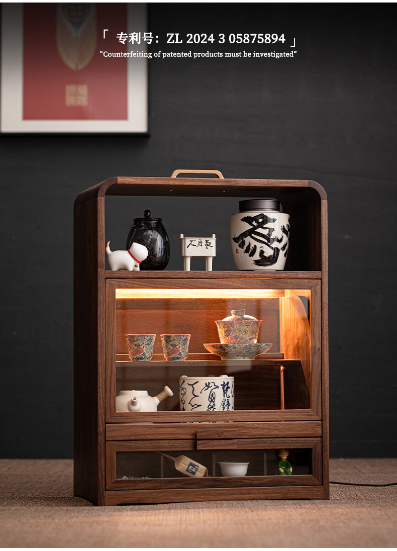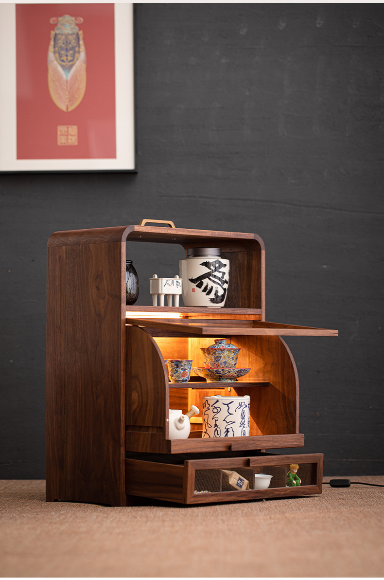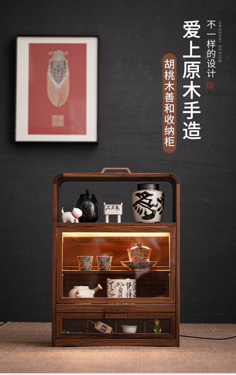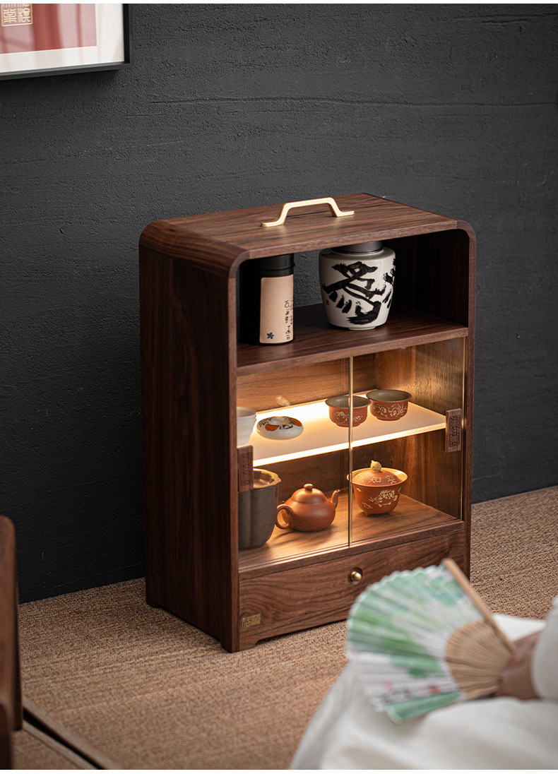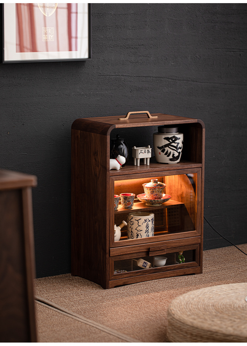 - Tủ lưu trữ gỗ óc chó tủ trưng bày trà kiểu Trung Quốc để bàn giá bộ trà phòng trà tủ trà giá để đồ trang trí