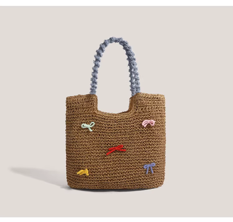 Túi cói đan hình nơ dễ thương, dung tích lớn dành cho nữ, mẫu mới hè 2025, túi đi biển, túi tote