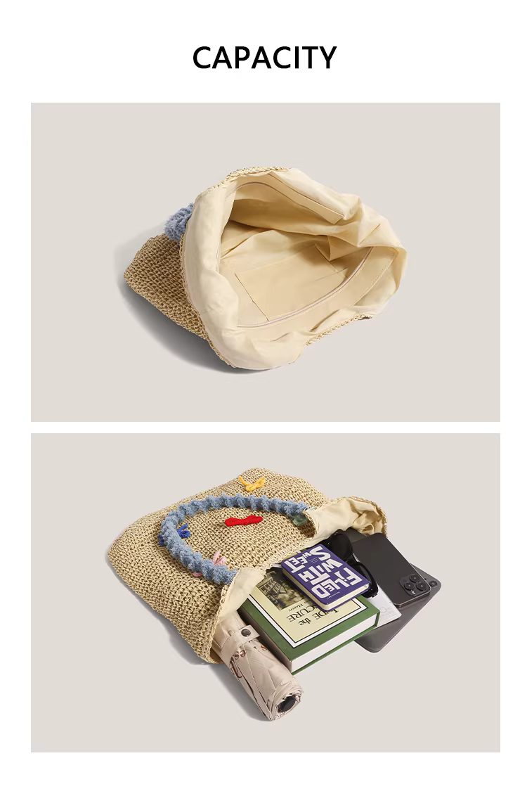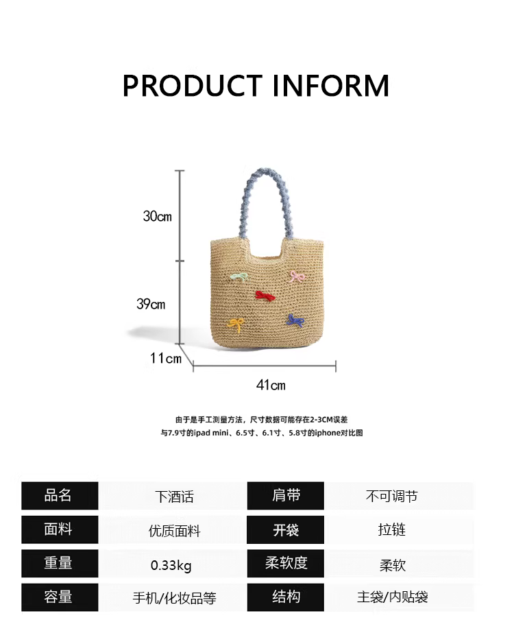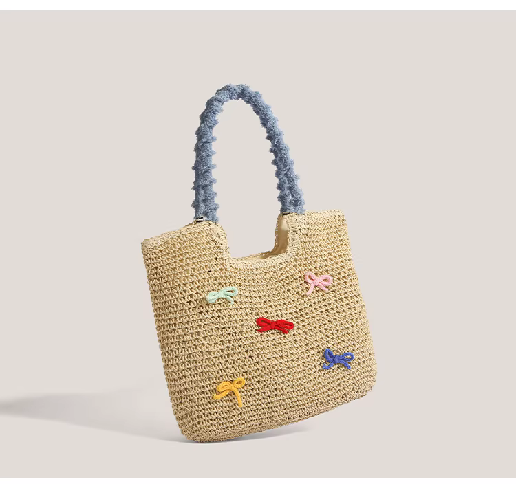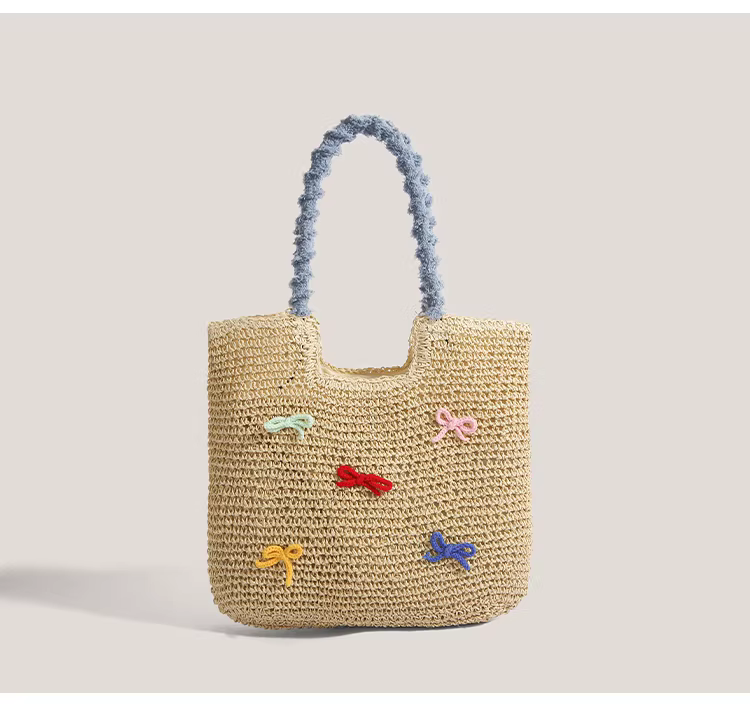 - Túi cói đan hình nơ dễ thương, dung tích lớn dành cho nữ, mẫu mới hè 2025, túi đi biển, túi tote
