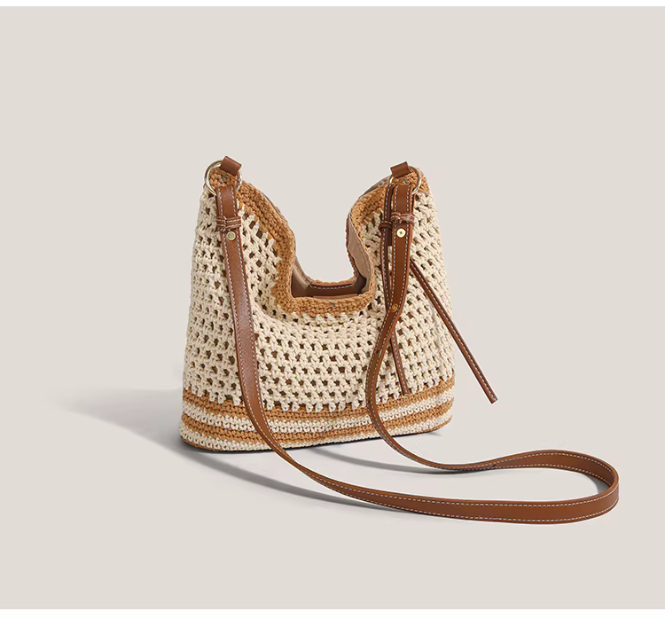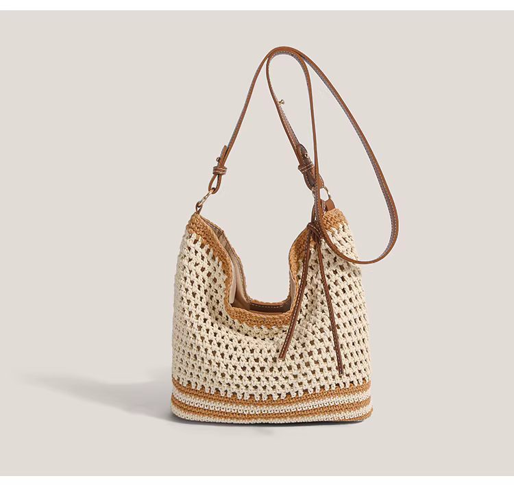 - Túi cói dệt cỡ lớn dành cho nữ, mẫu mới hè 2025, túi đeo vai/chéo thời trang, túi tote cói đục lỗ