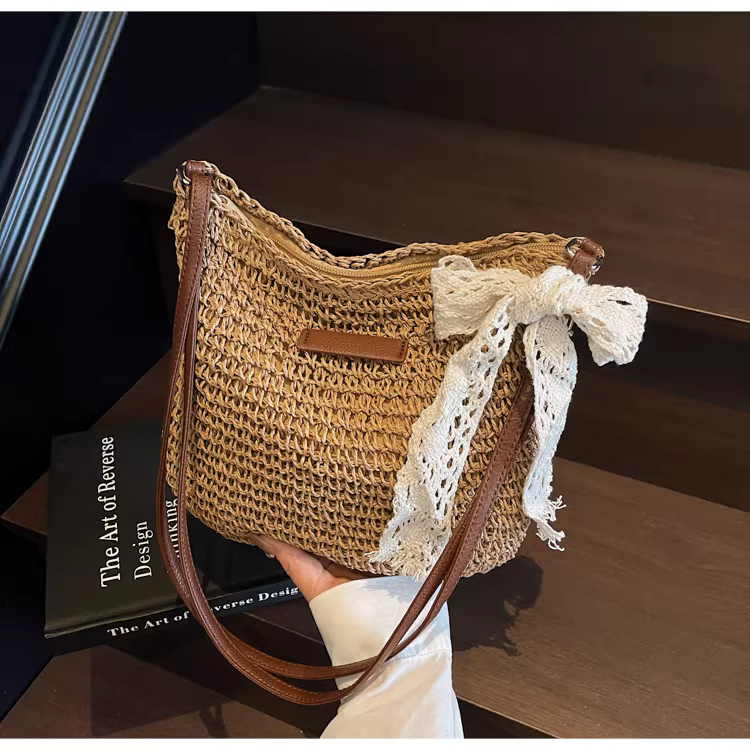 - Túi cói dệt thiết kế độc đáo dành cho nữ, mẫu mới xuân hè 2025, túi đeo vai/chéo đa năng, túi đi biển