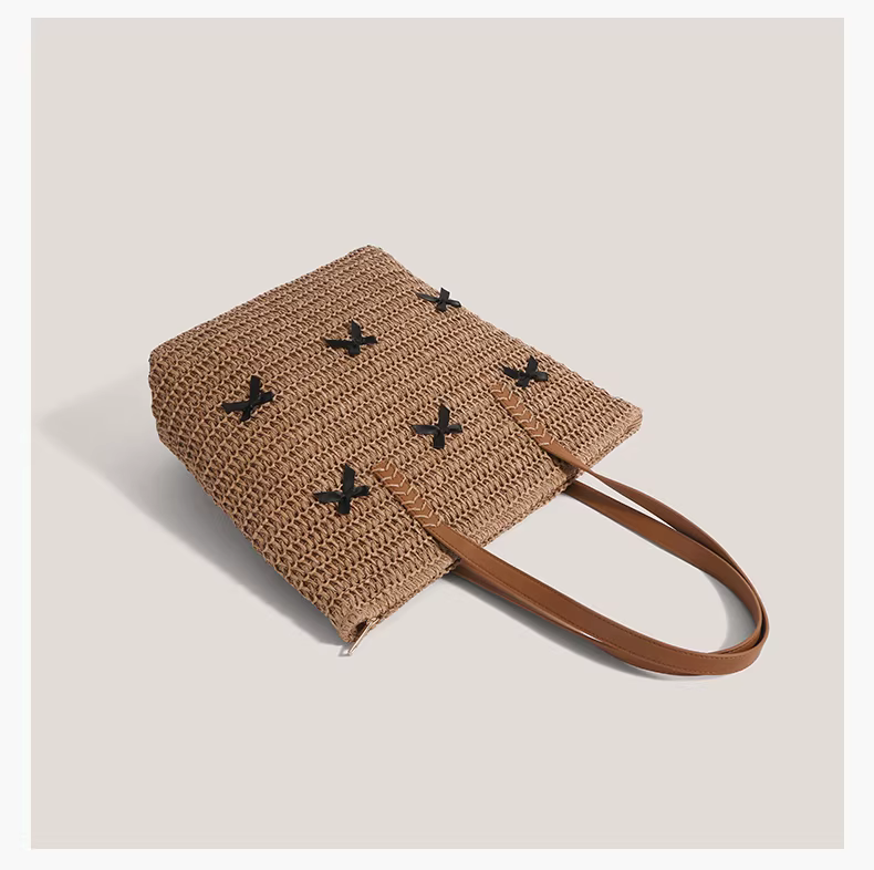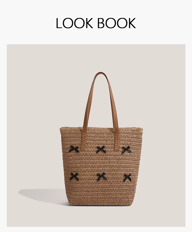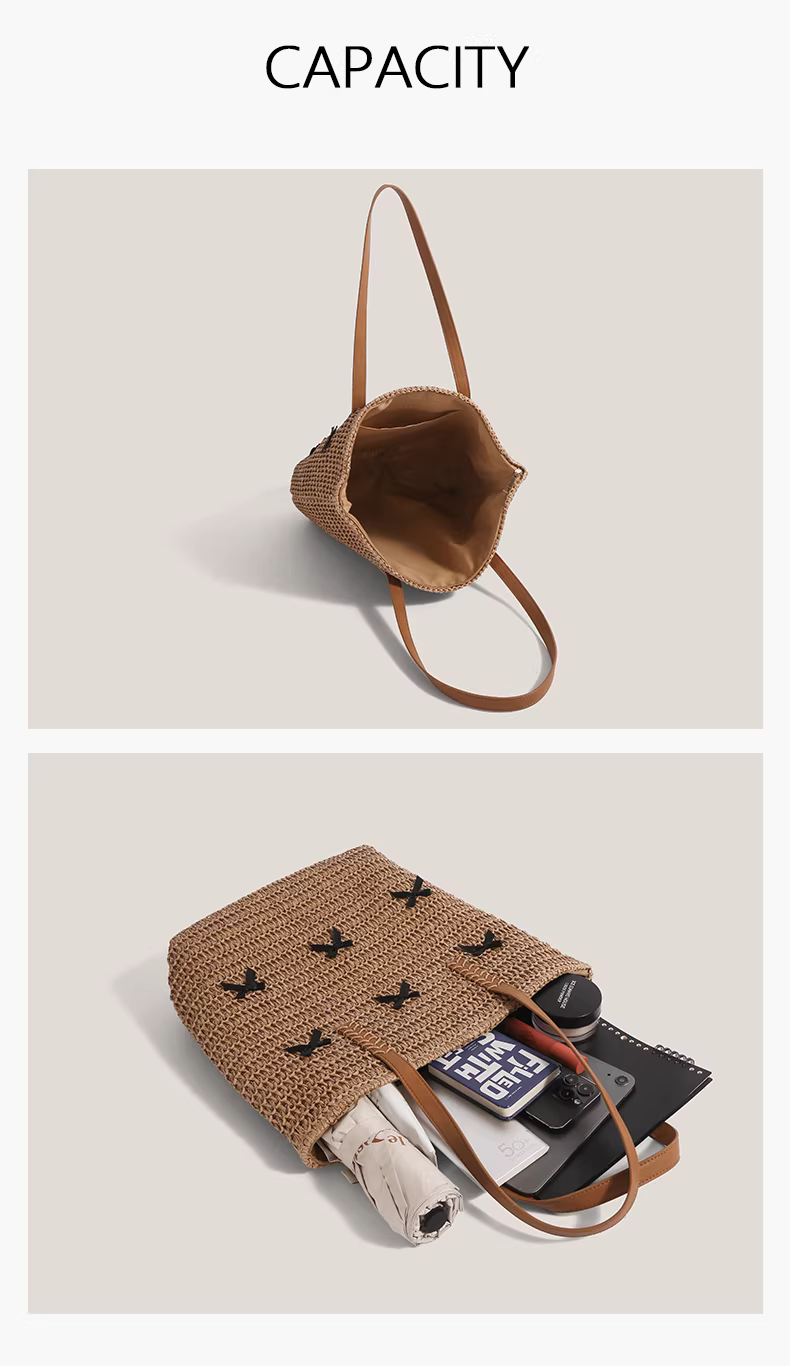 - Túi cói thắt nơ dành cho nữ, mẫu mới hè 2025, phong cách nghỉ dưỡng, túi tote cỡ lớn, kiểu retro