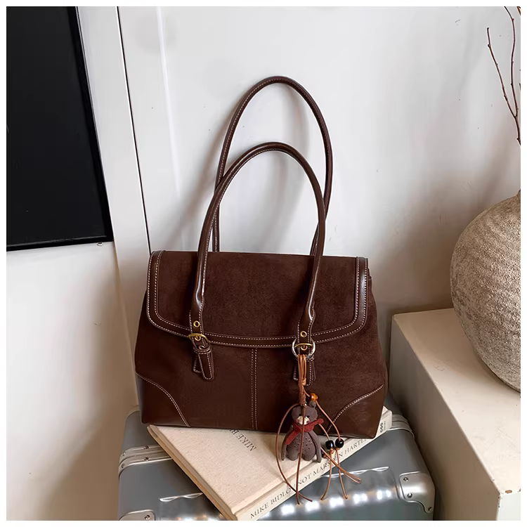 - Túi da lộn cỡ lớn dành cho nữ, mẫu mới thu đông 2025, phong cách giản dị cổ điển, túi đeo vai, túi tote đi học