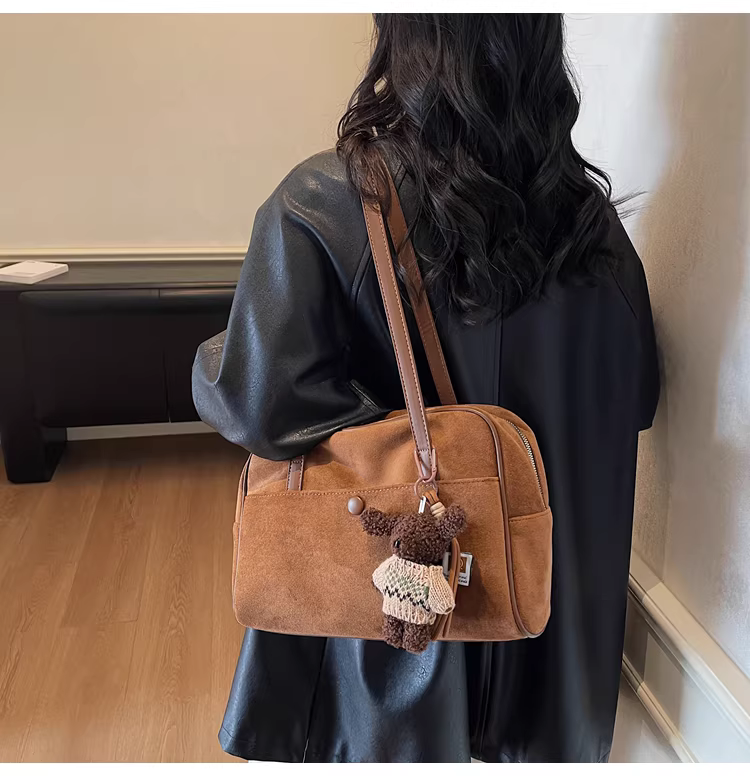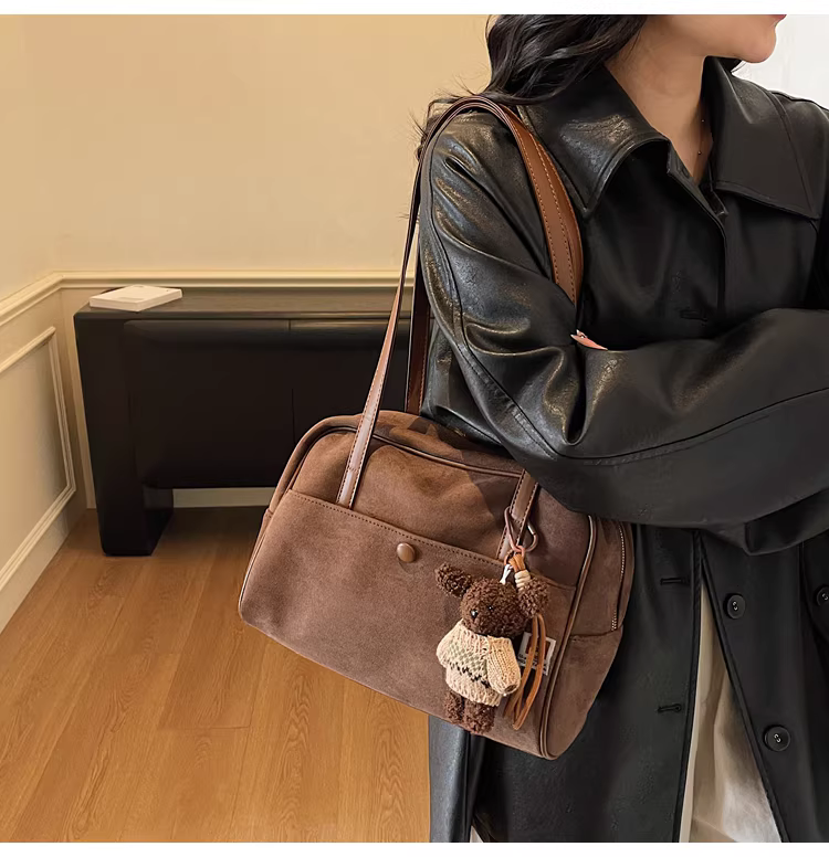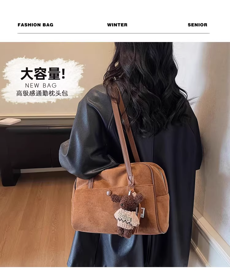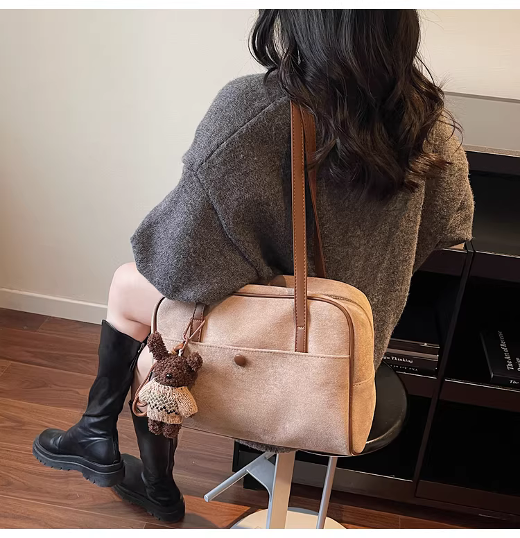 - Túi da lộn cỡ lớn dành cho nữ, phong cách retro thu đông 2025, túi đeo vai/nách đơn giản, túi gối cao cấp đi làm