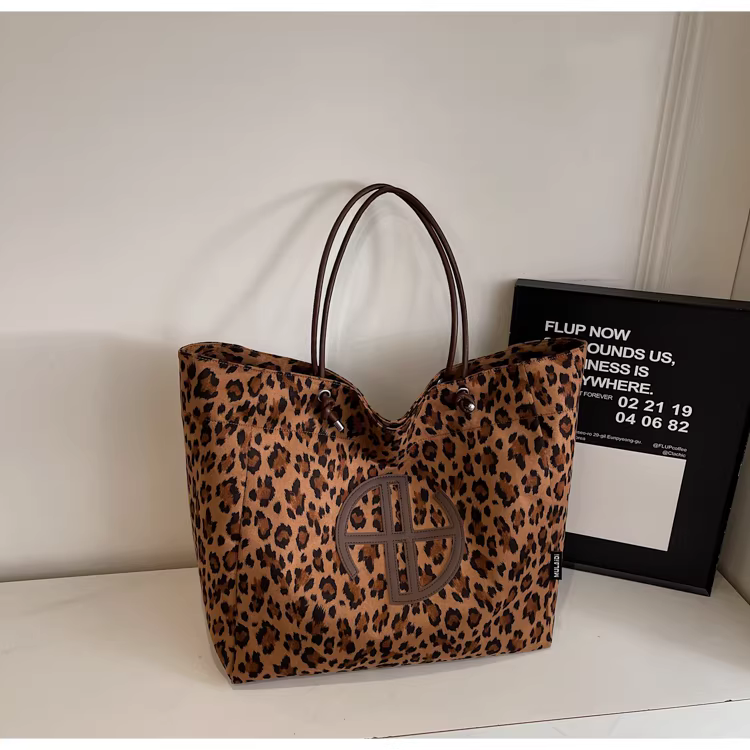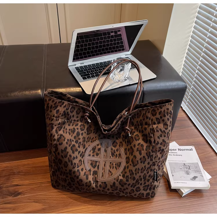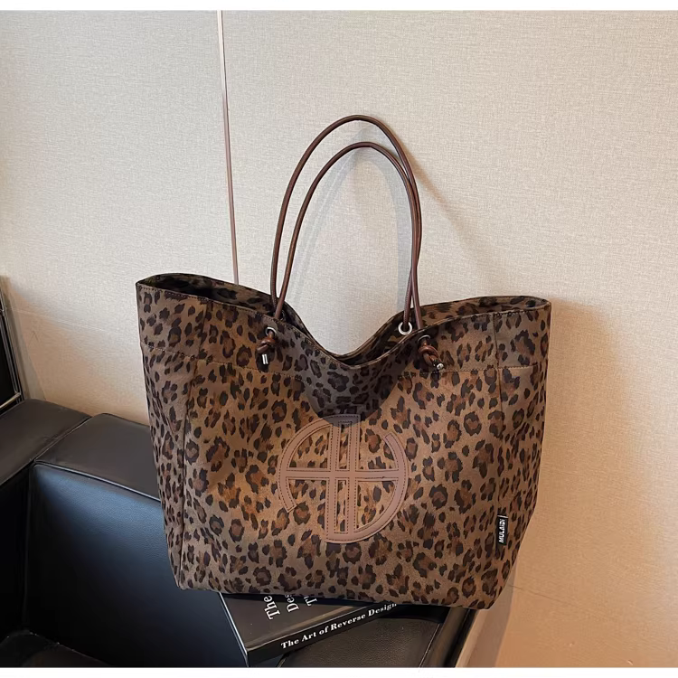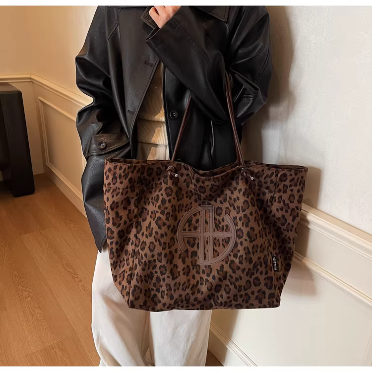 - Túi da lộn họa tiết báo dành cho nữ, dung tích lớn, mẫu mới thu đông 2025, đa năng, phong cách retro, túi đeo vai, túi tote đi làm
